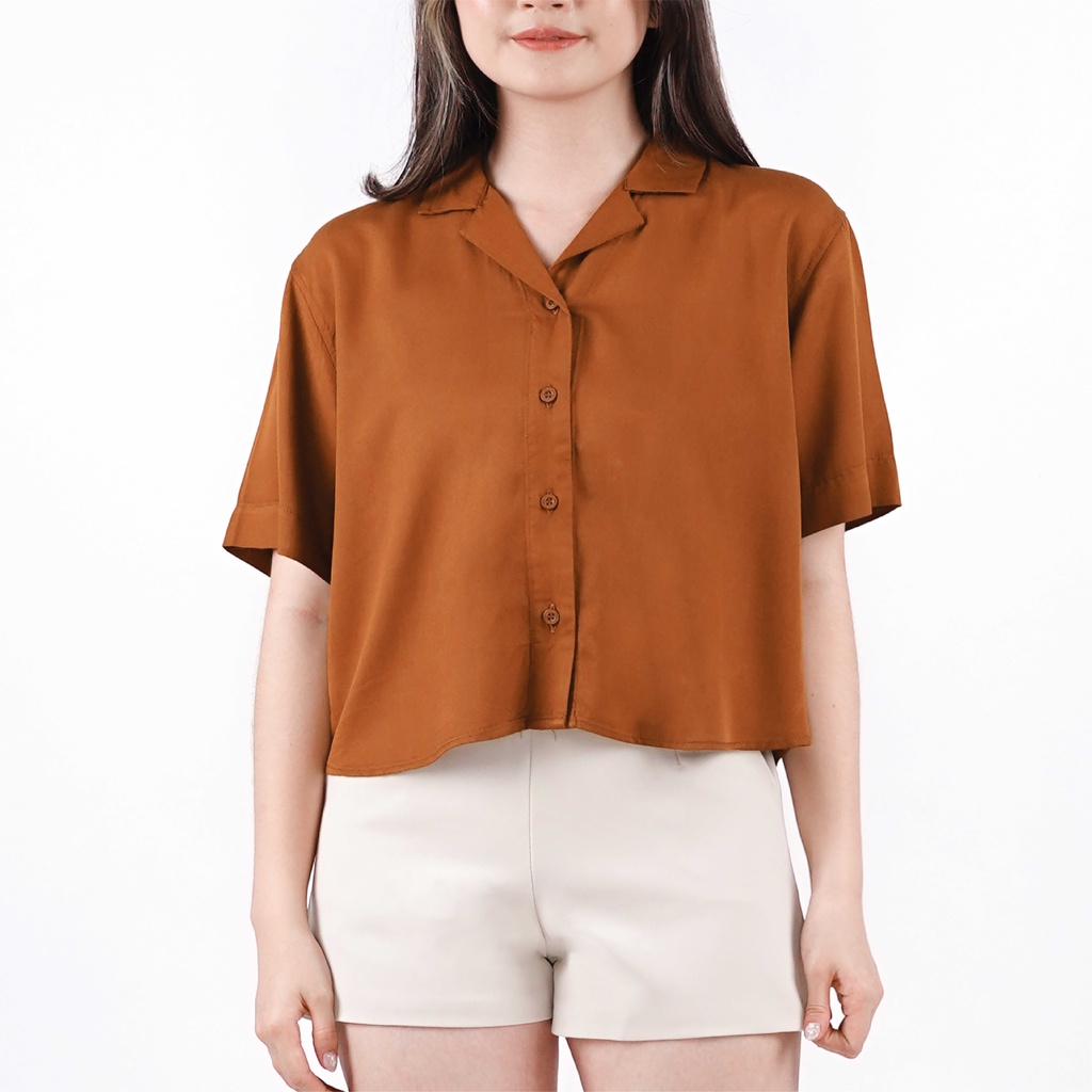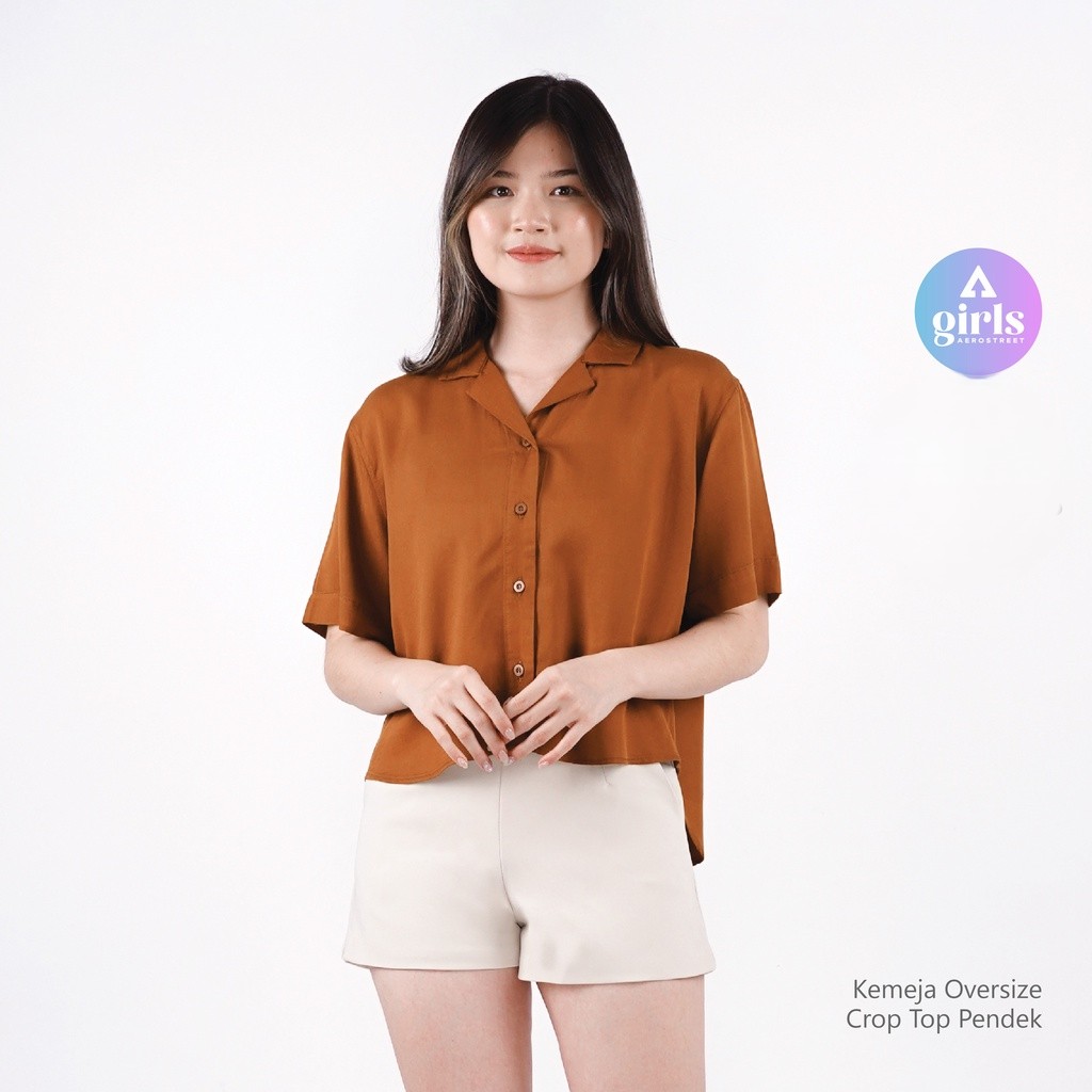 Aerostreet Kemeja Rayon Oversize Crop Top Yuki Brown Gelap Woman QDAAA Original Best Seller Official Store