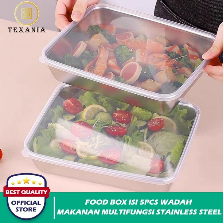 Kotak Penyimpanan Kulkas Food Box Isi 5pcs Stainless Steel Kontainer Tempat Penyimpanan Serbaguna Makanan Dan Sayuran