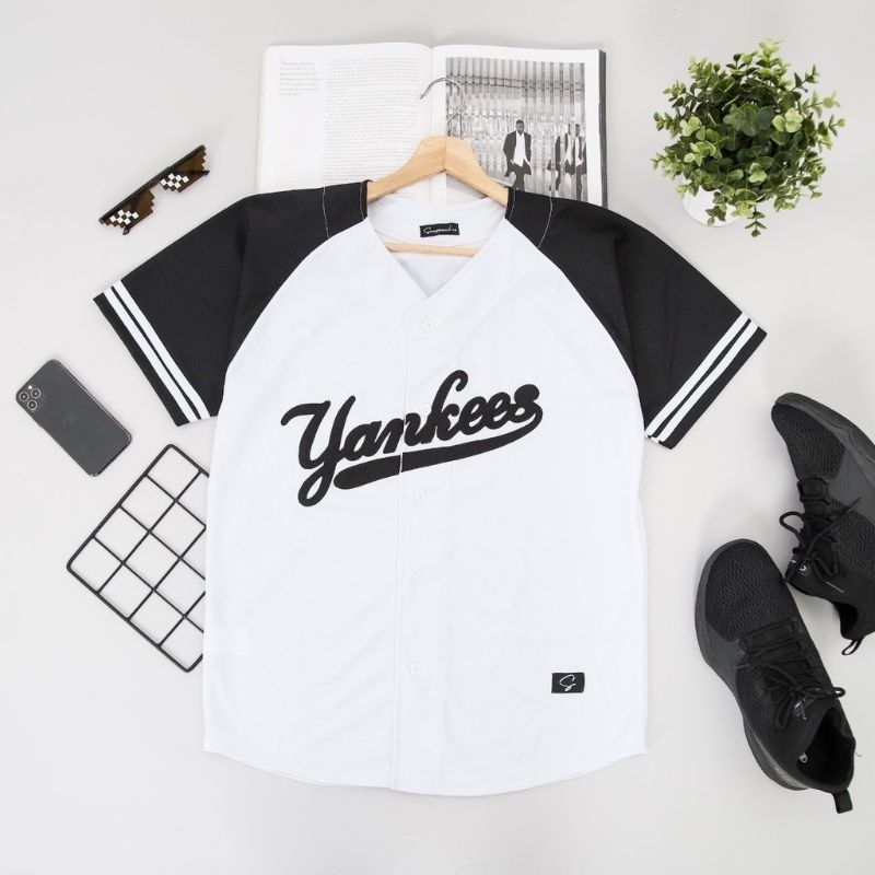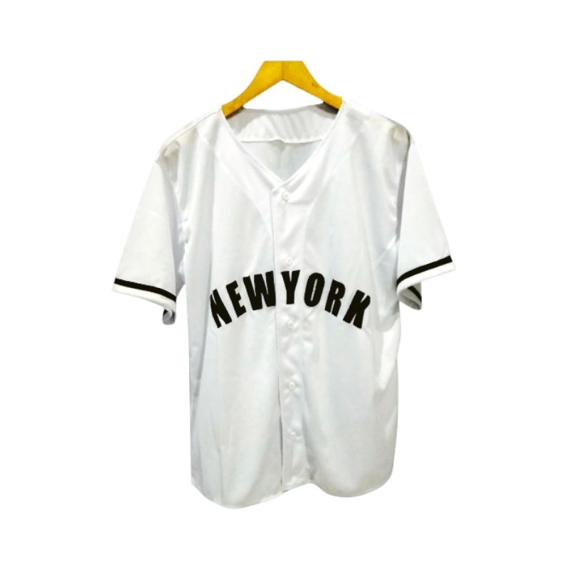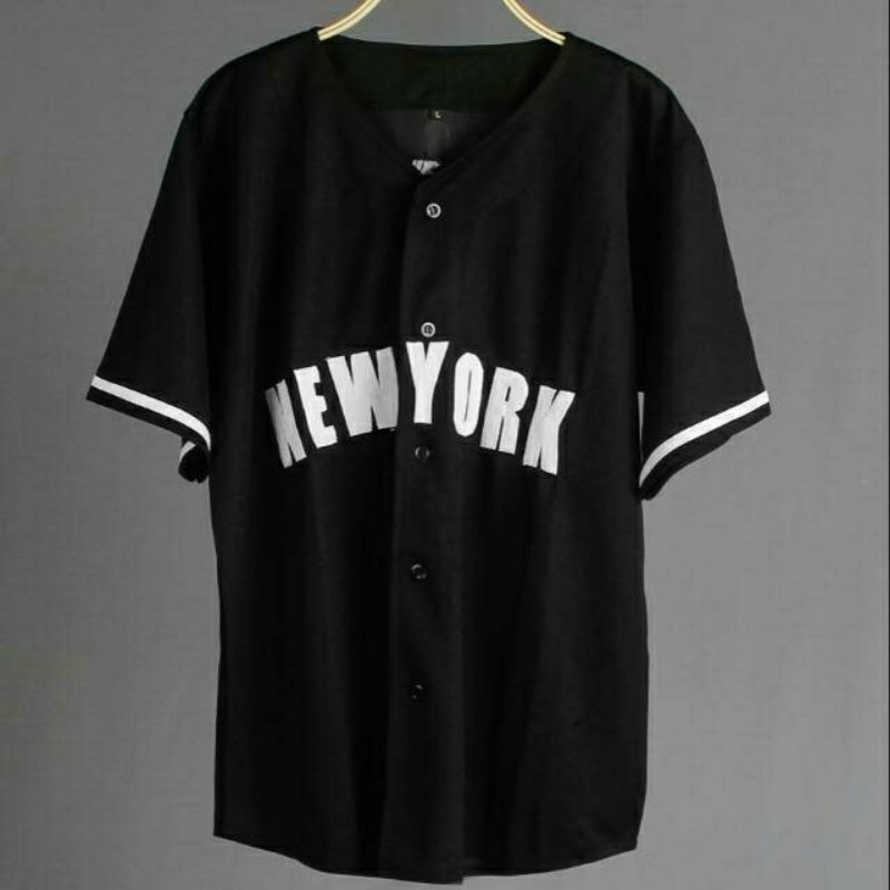 Ny Abu Lis Hitam Pria-Wanita Jersey Baseball Koas Baseball Baju Jersey Baseball Bahan Dryfit Bordir Timbul