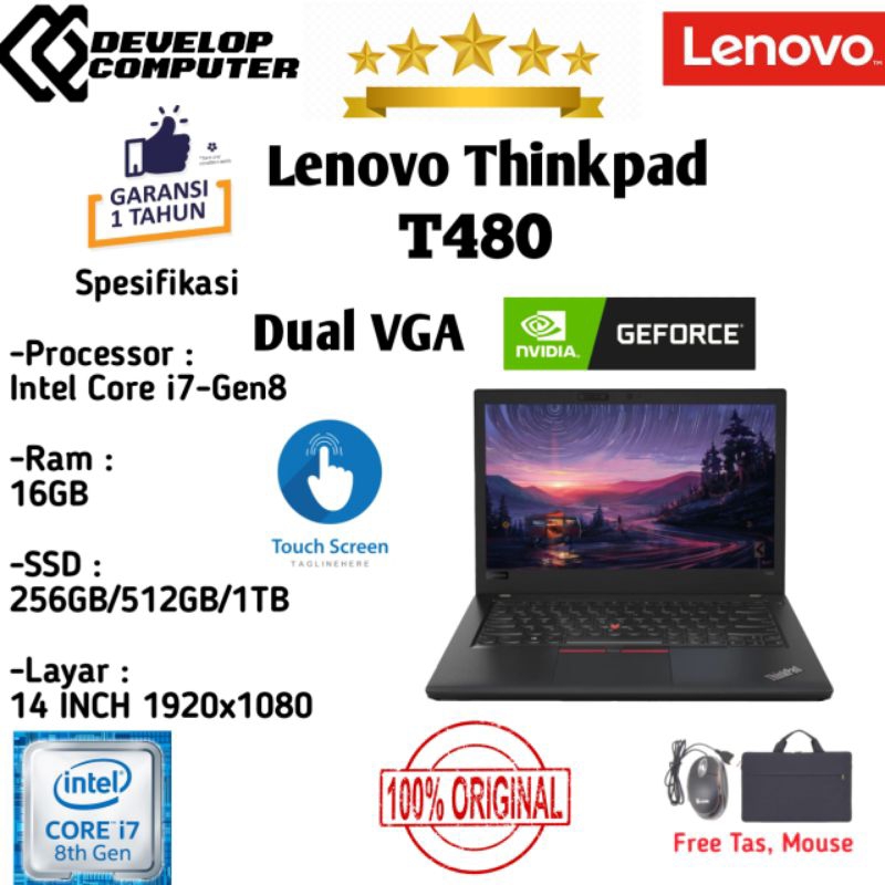 laptop lenovo thinkpad T480 Core i5/i7 Gen 8 Ram 16GB Touchscreen MULUS BERGARANSI