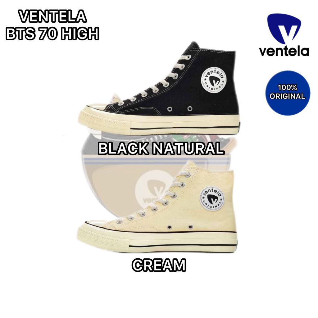 Ventela Back To 70's High Black Natural/Cream Shoes Free Sticker Casual Pria Sneakers / Free Stiker & Free Kaos Kaki