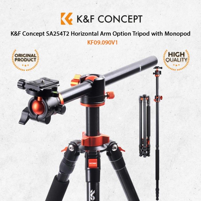 K&F Concept KNF KF SA254T2 Horizontal Arm Option Tripod with Monopod - Tripod Kamera - Camera Tripod