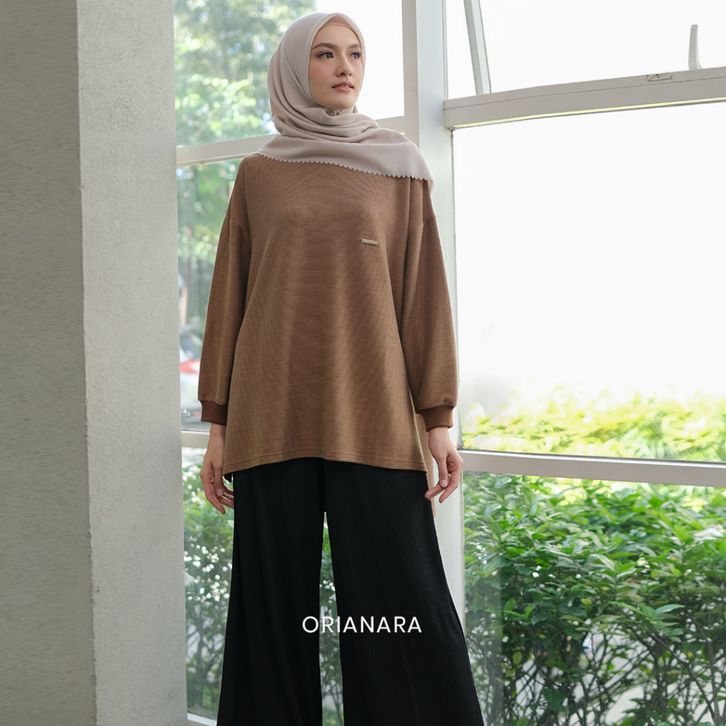 Orianara LARA BASIC Shirt Kaos Knit Wanita Oversized Jumbo Lengan Panjang