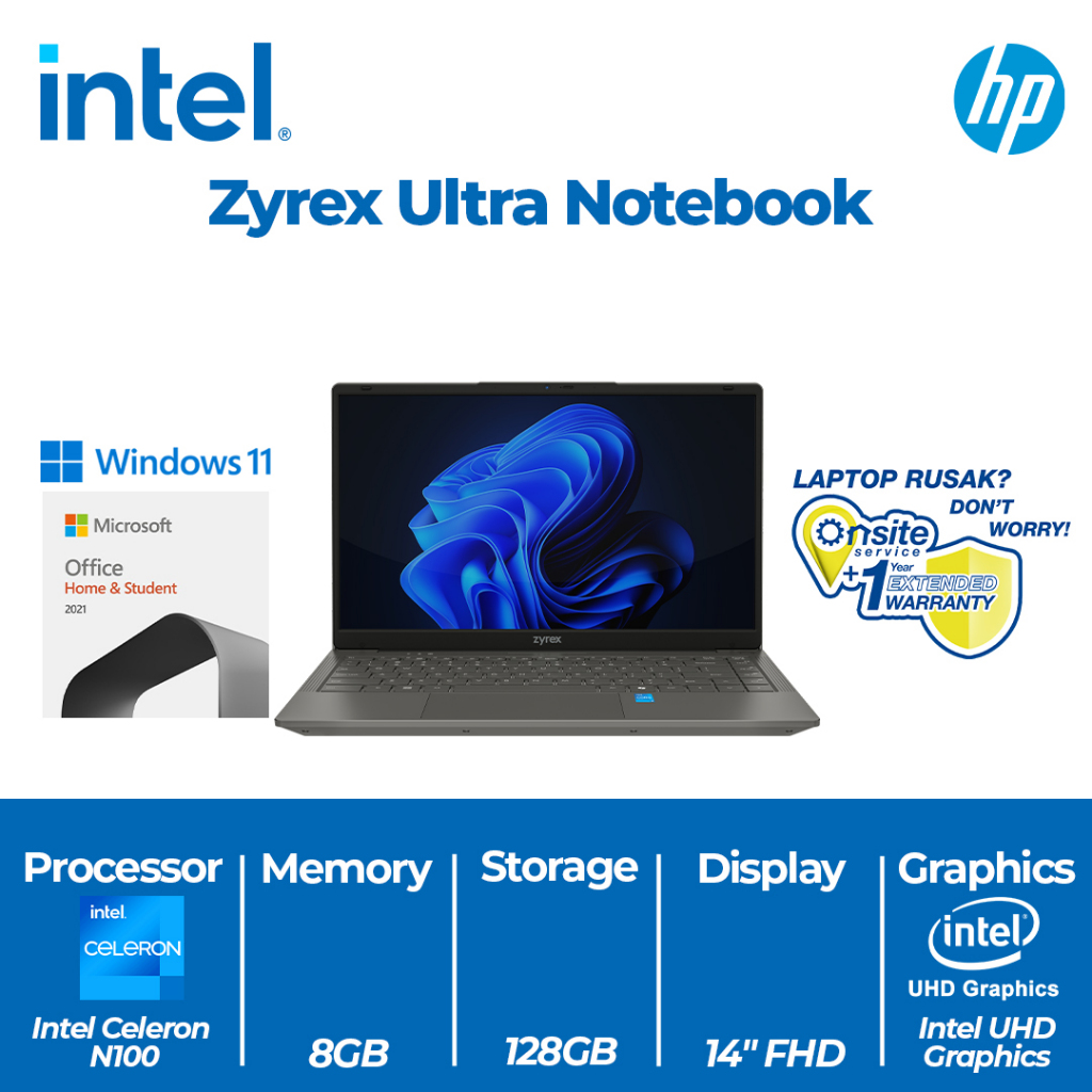 Zyrex Ultra Notebook [Intel N100/ 14" FHD 1920x1080/ 8GB/ eMMC 128Gb + 256Gb SSD/ Win 11]