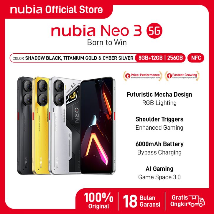 Nubia Official Store Hp Game Terbaik New 2025 Hp Gaming NUBIA Neo 3 5G RAM 20GB 6000mAH Hp Game Ram Besar Hp Murah