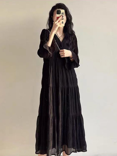 Fashion Baru Gaya Sederhana Dress Panjang Sifon