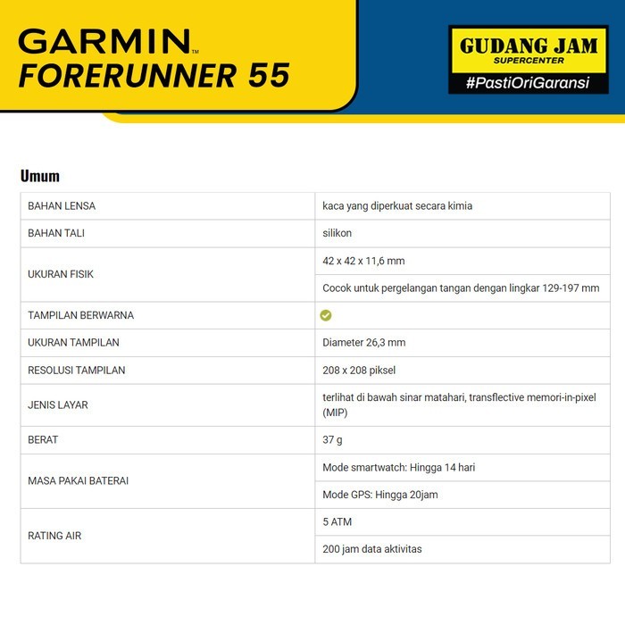 Garmin Forerunner 55 GPS Sport Smartwatch - Garansi Resmi TAM 2 Tahun