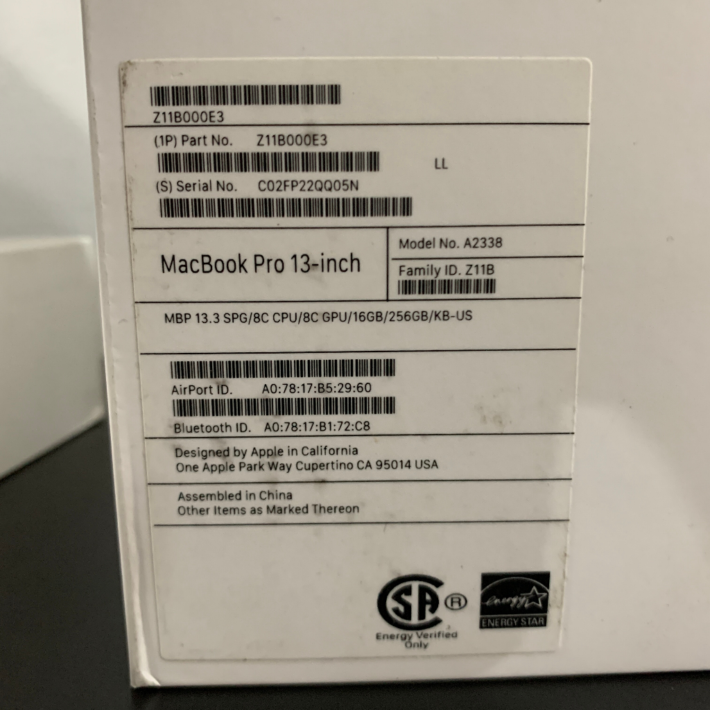 MacBook Pro M1 2020 13 Inch RAM 8GB 16GB SSD 256 512 GB CTO - LIKE NEW