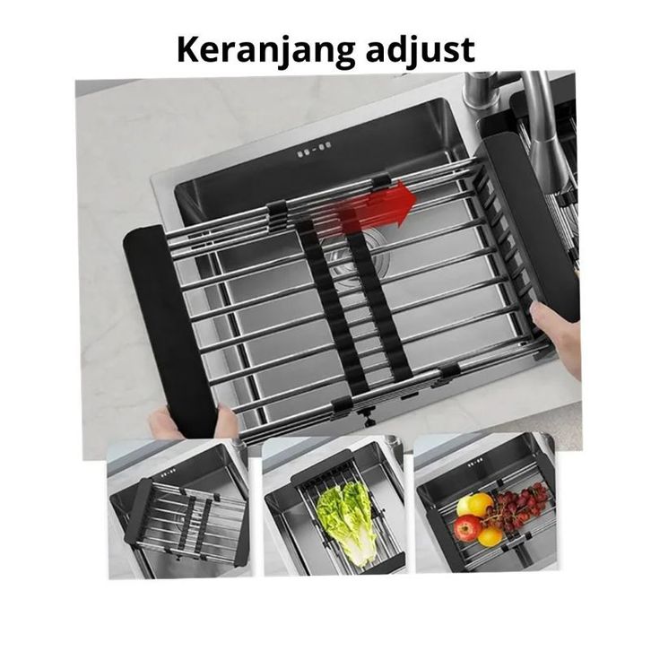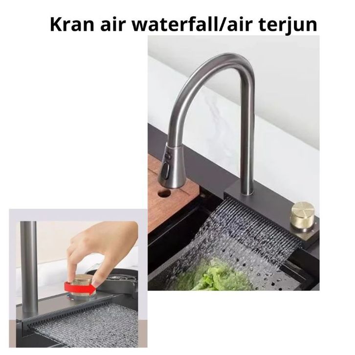 KITCHEN SINK 1 LUBANG BESAR STAINLESS HITAM PLUS KRAN WATERFALL