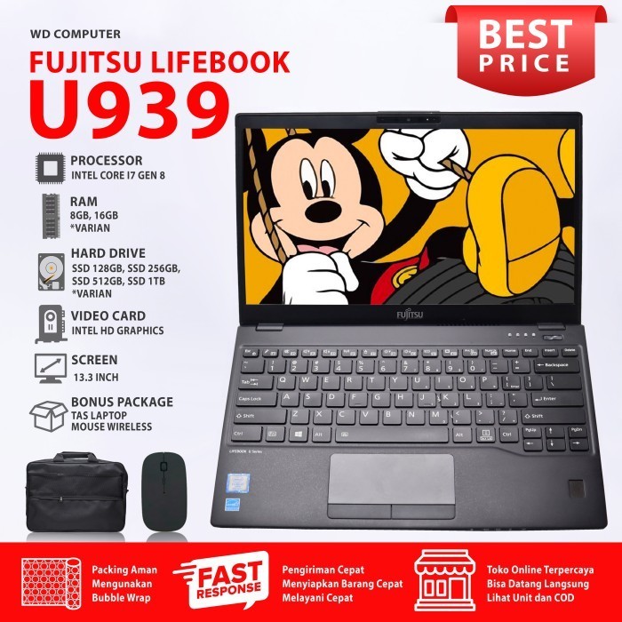 [Limited Stock] Laptop UltraSlim Fujitsu U939 core i7 gen 8 | Layar 13 inch | Fingerprint Siap Pakai