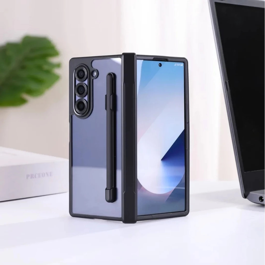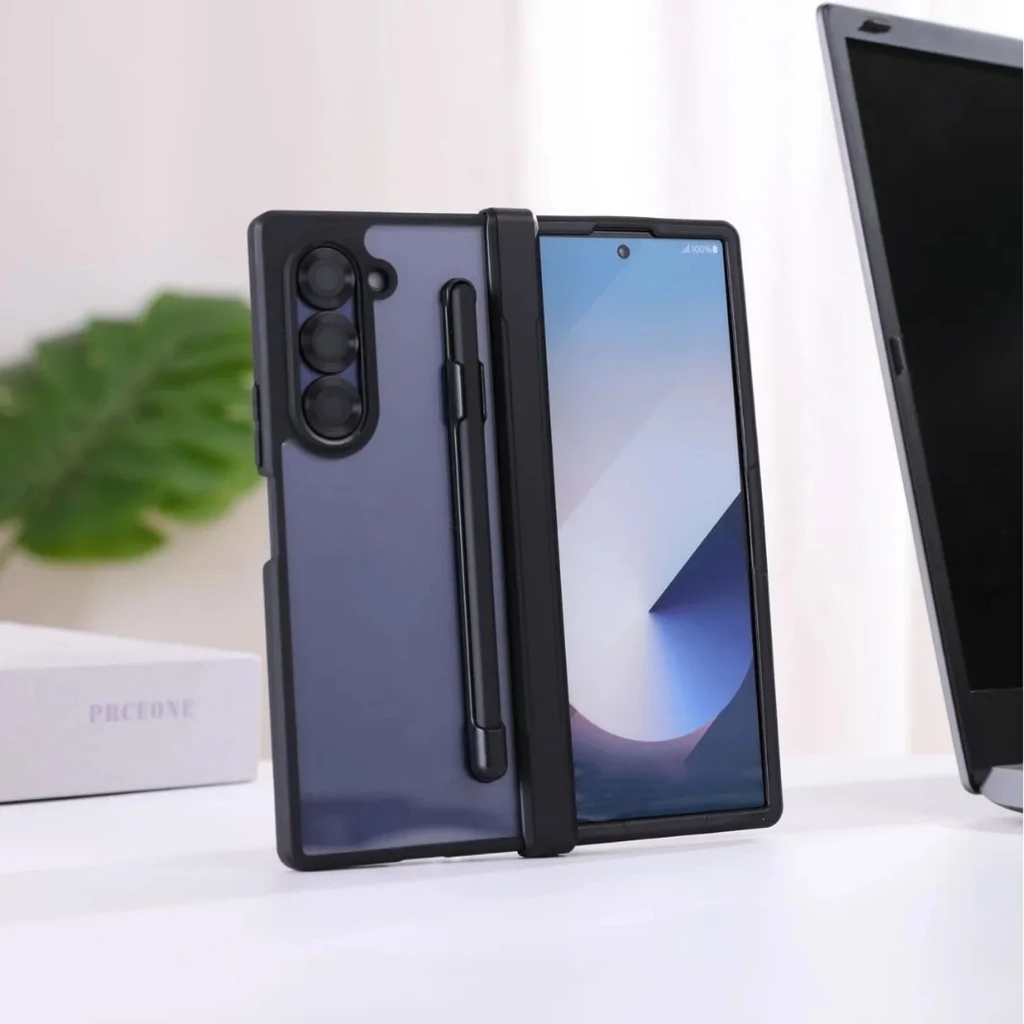 Case Black + Stylus HE 304 Samsung Z Fold 4 5G | Z Fold 5 | Z Fold 6 Matte Hinge Armor Case Casing Transparent PC Froste