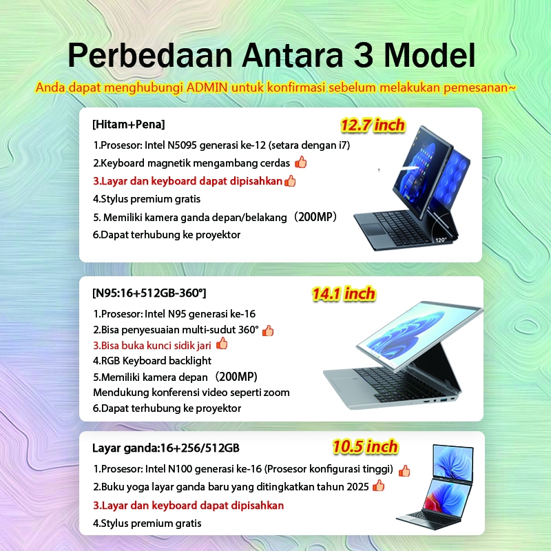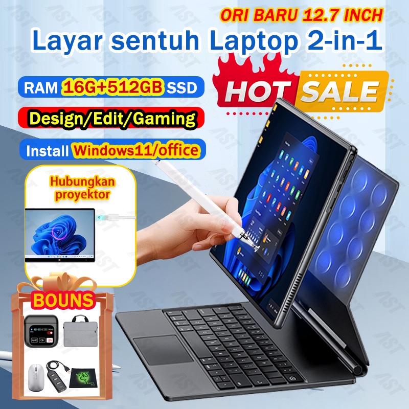 [GAME/DESIGN] laptop touchscreen 2in1 terbaru lipat Ram16gb+512gb SSD 12" Intel N5095 Surface 2K Win11 Hubungkan proyektor