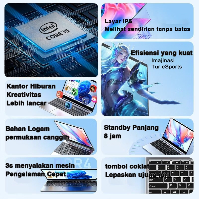 Lenovo Factory 2025 Laptop Kantor Baru 14 inci Intel Core i5 8265U Laptop 8GB RAM SSD 128GB Laptop Baru Windows 11