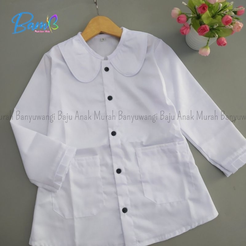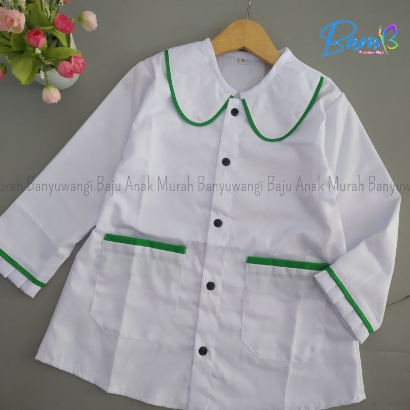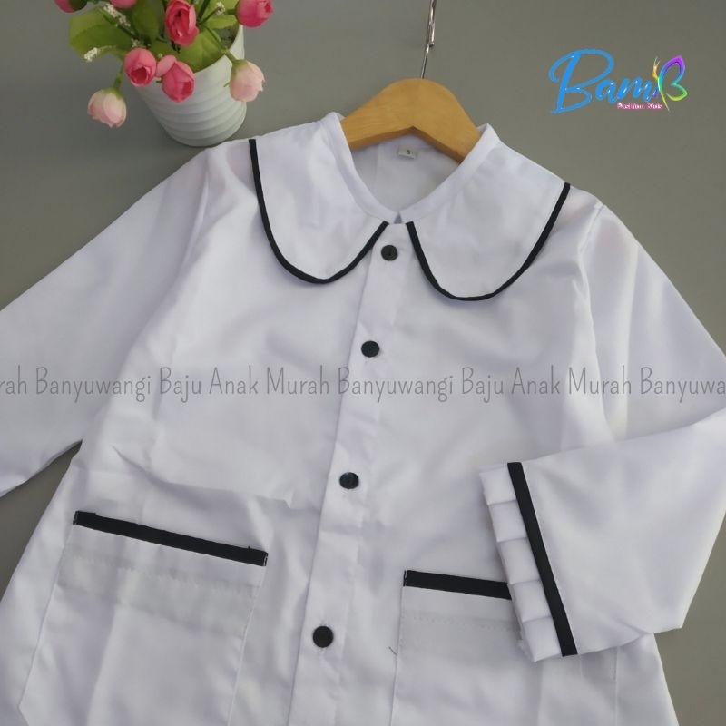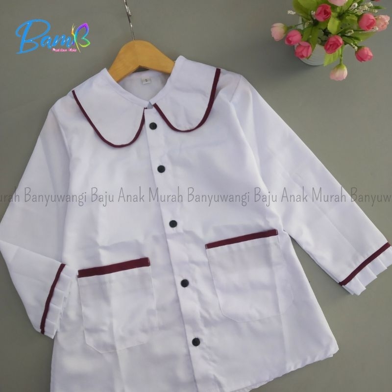 baju kemeja anak perempuan putih polos list hitam lis hijau lis merah maroon atasan cewek seragam sekolah MI dan SD atau