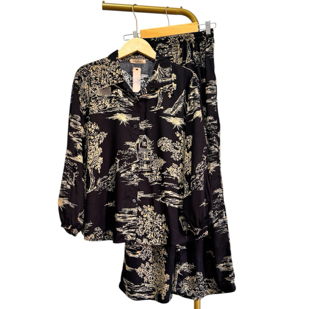 SET KEMEJA CELANA KULOT BUNDLING CELANA DAN BAJU ONE SET KUOT Rayon Motif