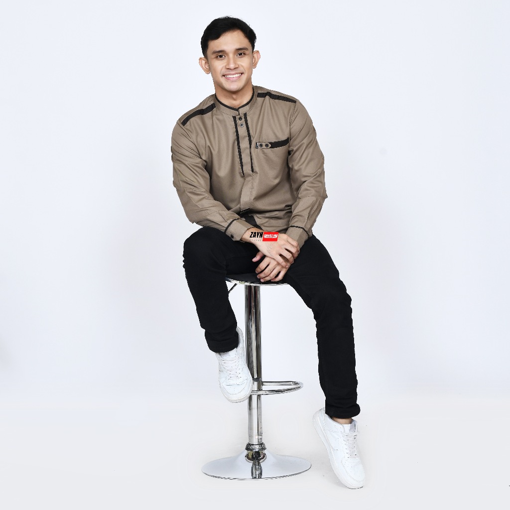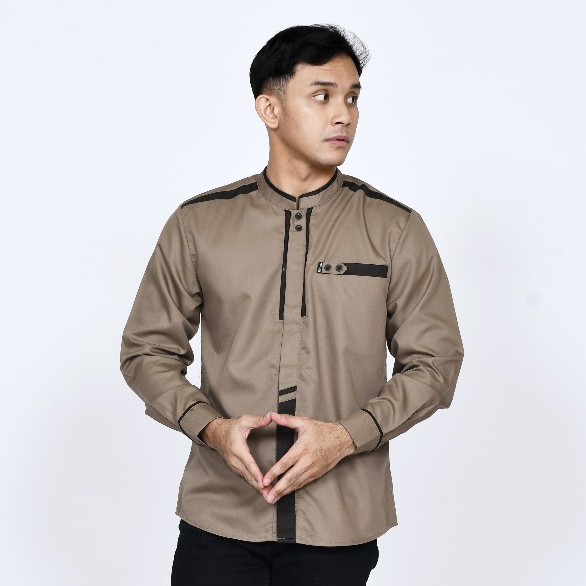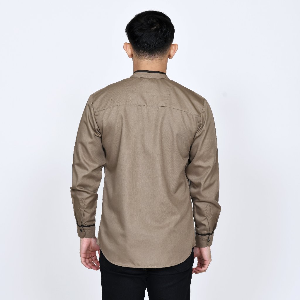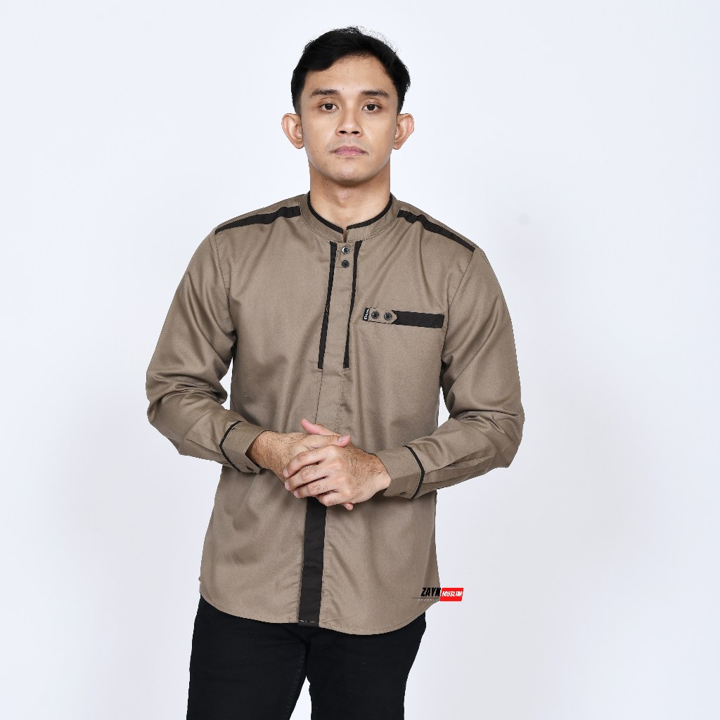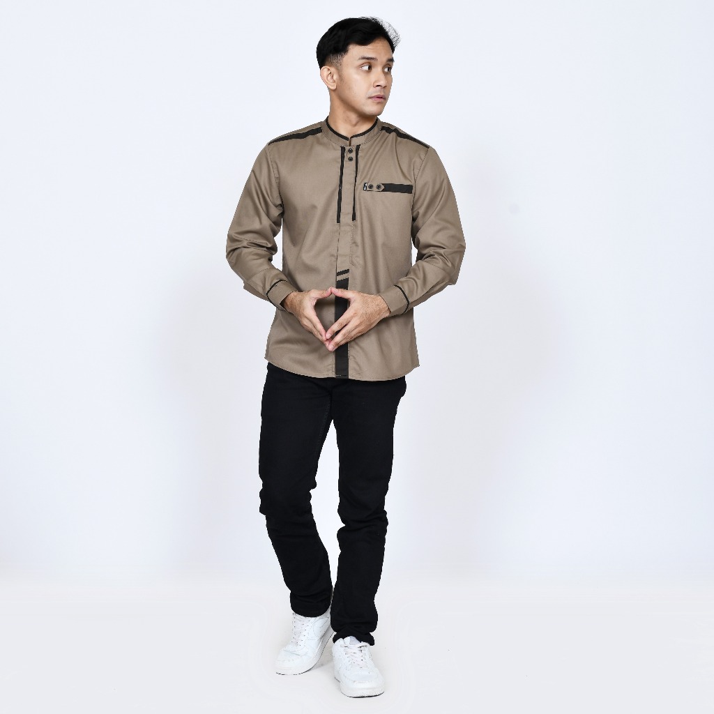 Baju Koko Pria Dewasa Lengan Panjang Warna Coklat Motif Katulistiwa Elrumi Katun