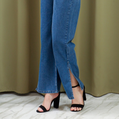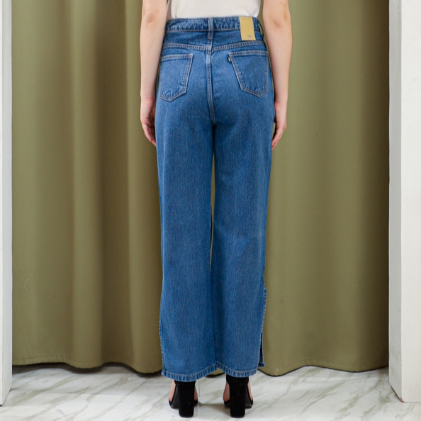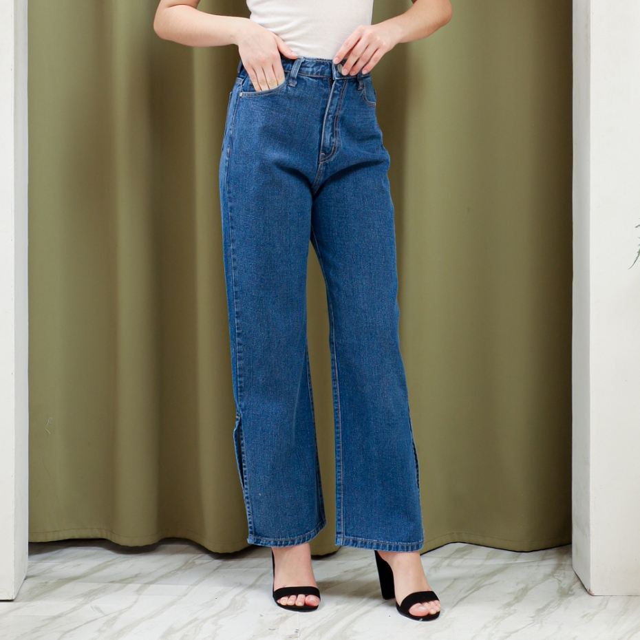 MKY Clothing Side Straight Jeans Blue High Waist Denim Katun