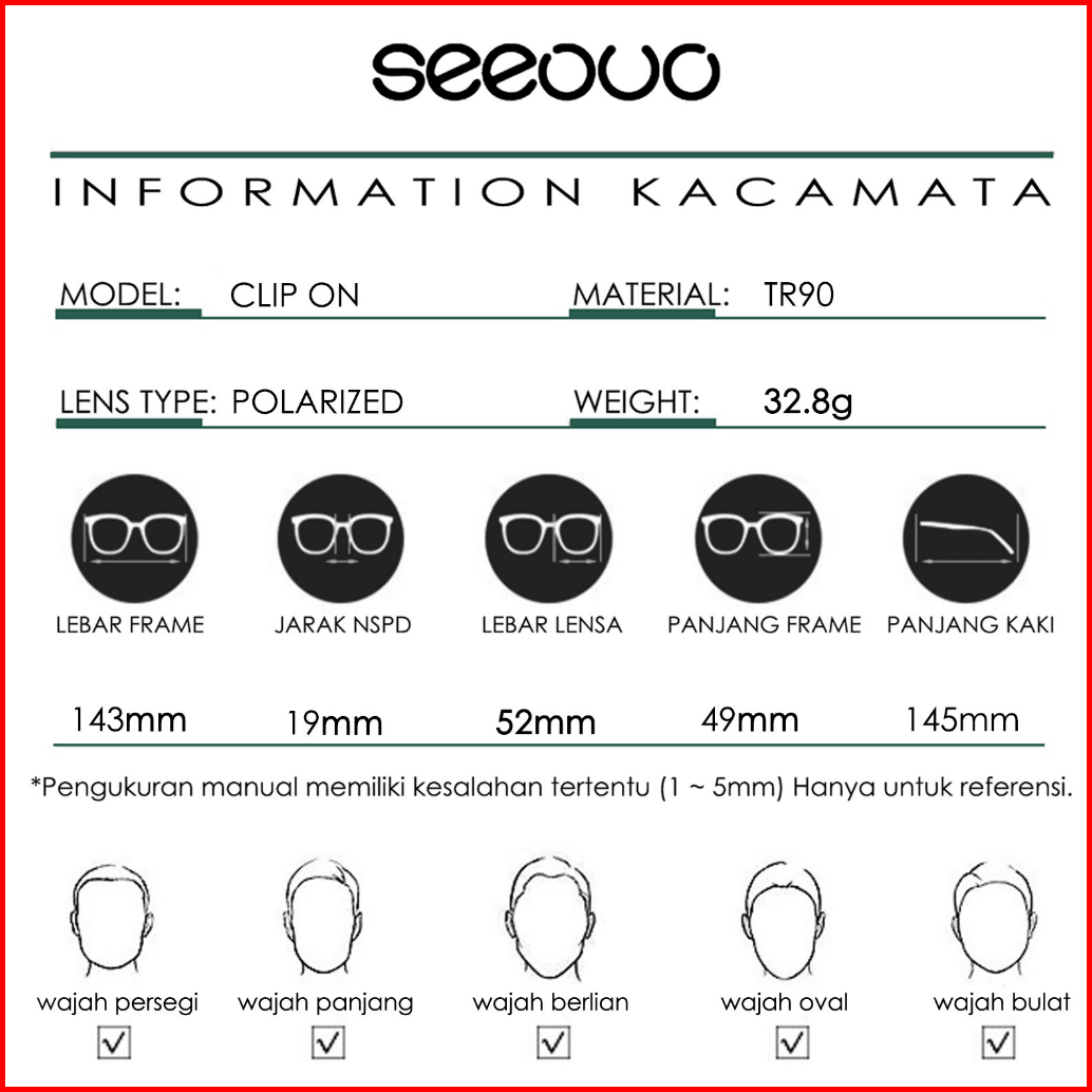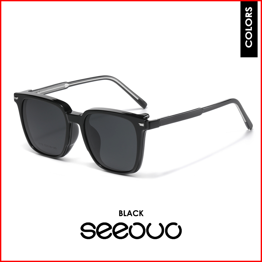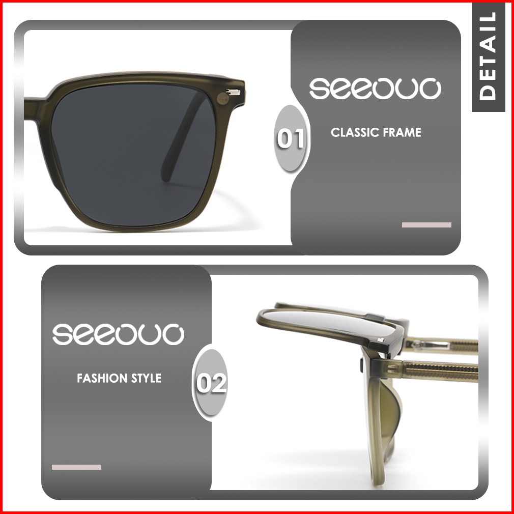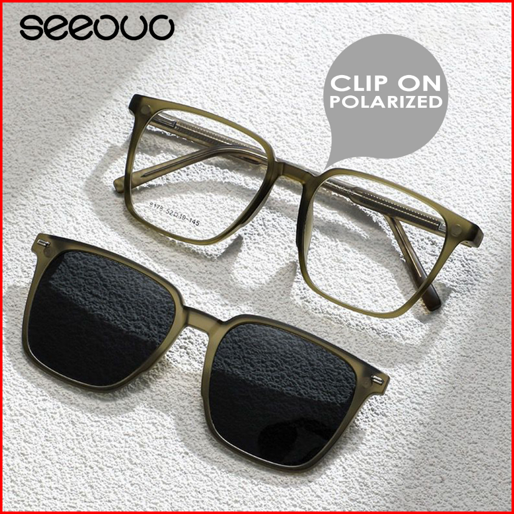 Seeouo Kacamata Clip On Free 1 Lens Polarized Anti Sinar Uv 400 Bentuk Oval Bahan Metal Kuat Tr90 Fashion Pria Wanita Ke