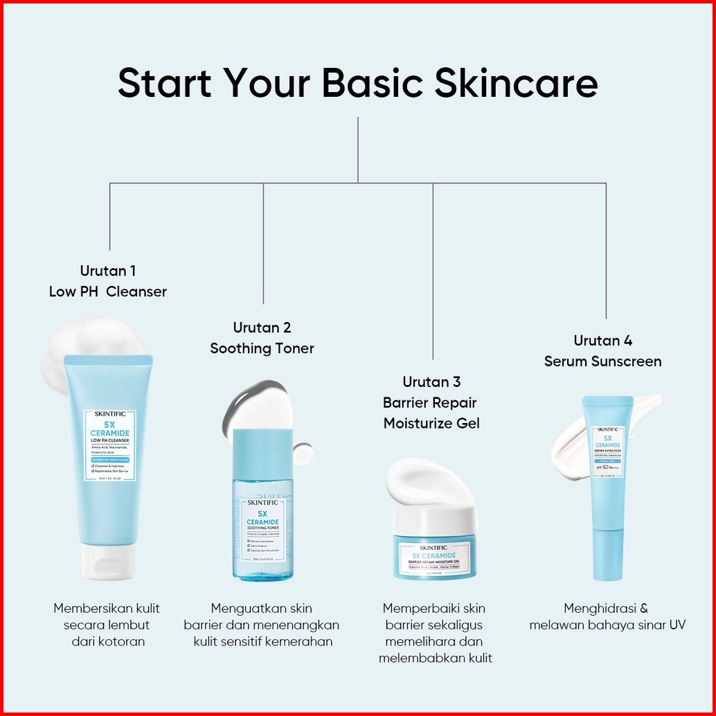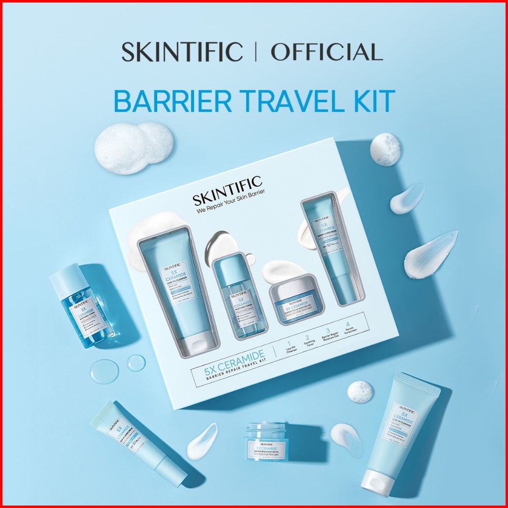 Travel Box Skintific - 4pcs Travel Set 5x Ceramide Barrier Kit 5x Ceramide Low Ph Cleanser 15ml Soothing Toner 20ml Mois