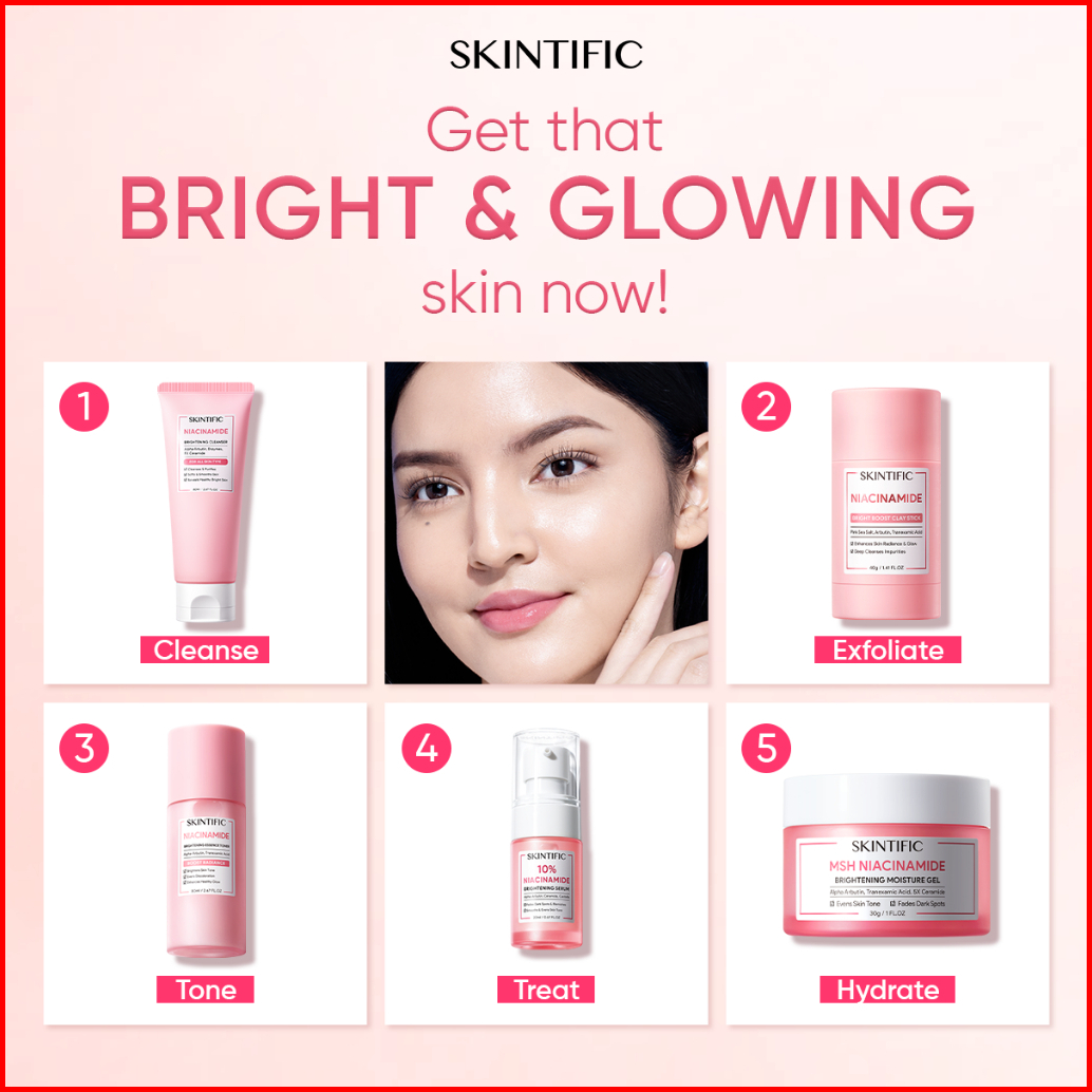Skintific - Niacinamide Brightening Series Serum Moisturizer Gel Toner Cleanser Clay Stick Facial Wash Day Night Cream G