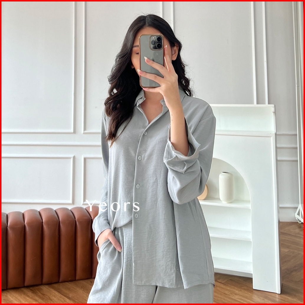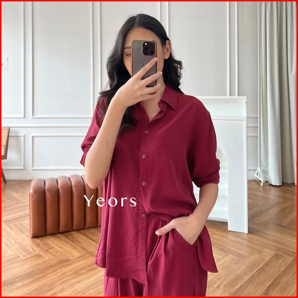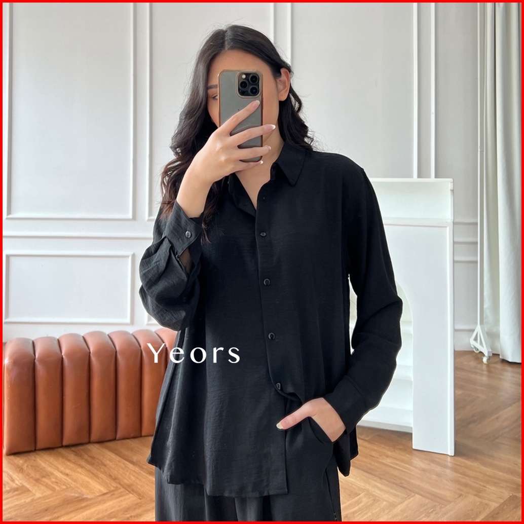 Yeors - Zoya Premium Crinkle Shirt - Baju Atasan Kemeja Wanita Murah Berkualitas - Korean Loose Blouse - Loungewear - Ke