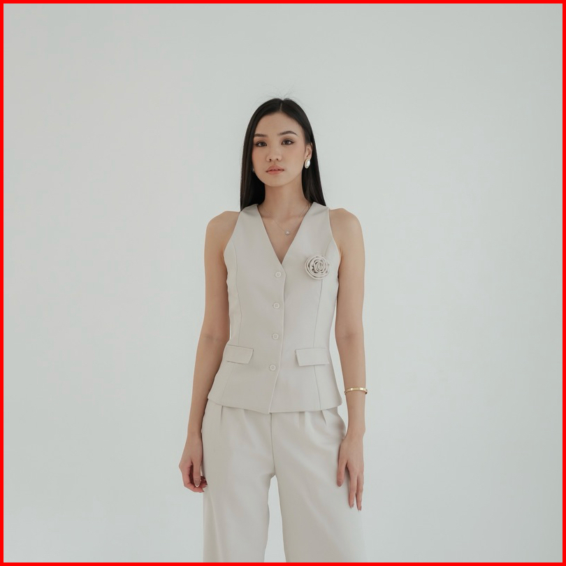 Azalea Rose Brooch Top -- Ocha Wear Vest Casual Top Pakaian Atasan Wanita Women Formal Tanktop