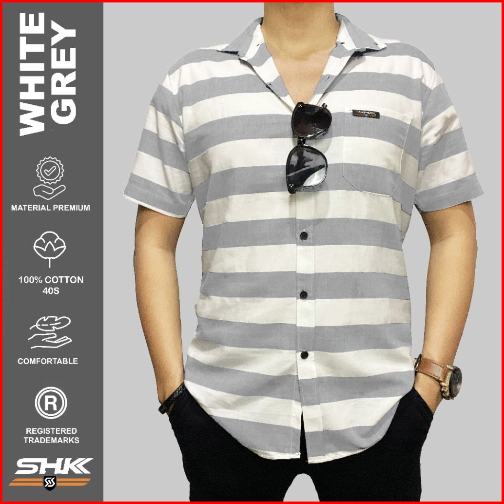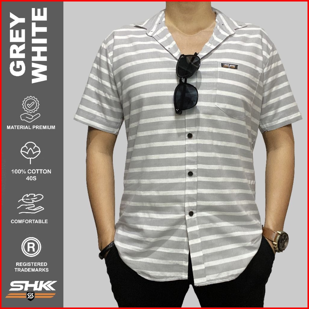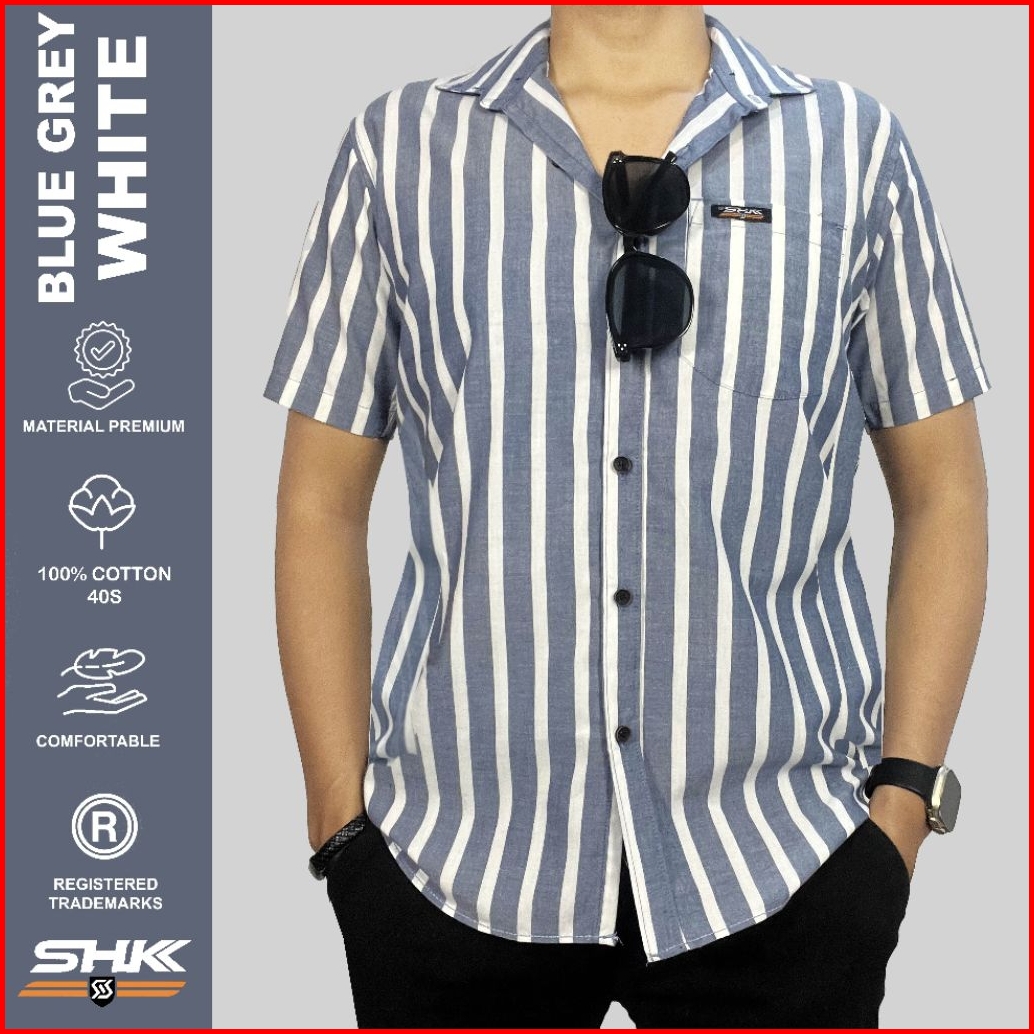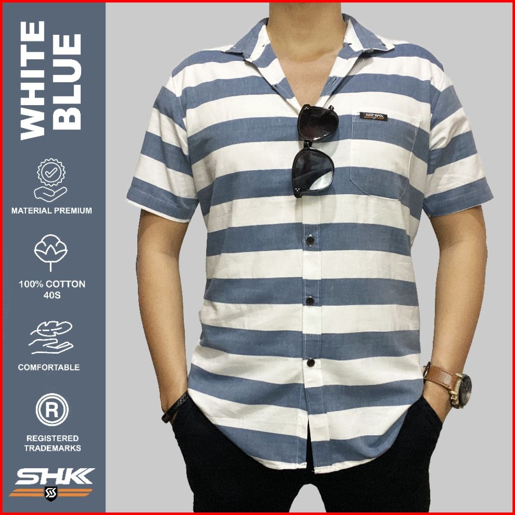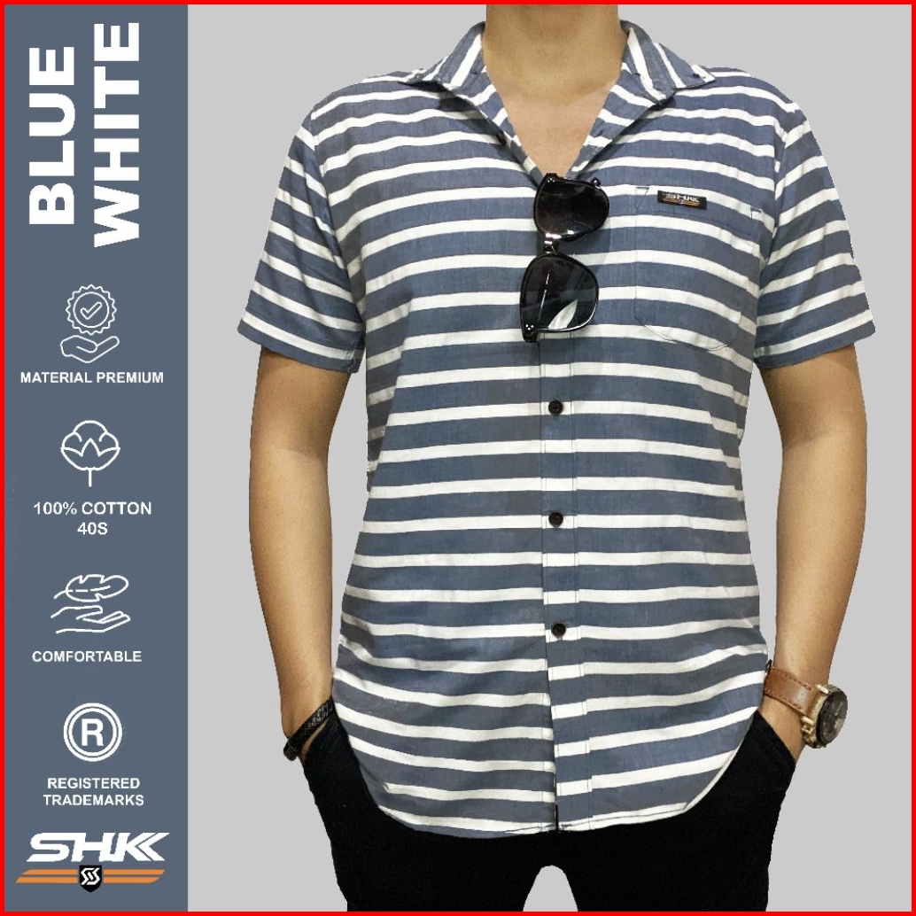 Kemeja Stripe Lengan Pendek Pria Premium Original Motif Salur