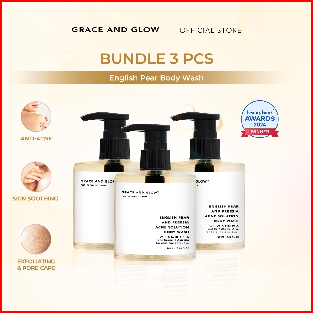 Grace And Glow English Pear And Freesia Anti Acne Body Wash Shower Gel - Sabun Mandi Cair Untuk Mengurangi Jerawat Pungg