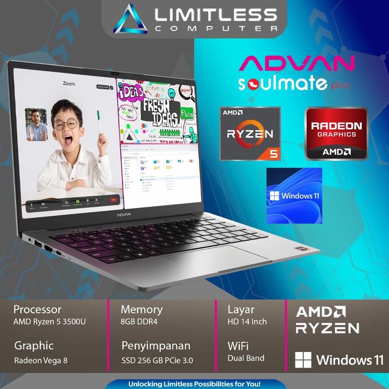 Advan SOULMATE PLUS AMD Ryzen 5 3500U 8GB 256GB Radeon RX Vega 8 Win 11 Laptop Garansi Resmi