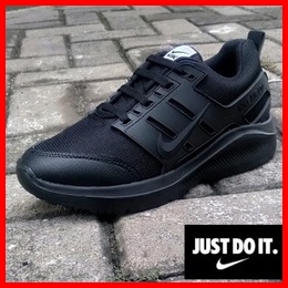 Promo Sepatu Sekolah Hitam Polos Sneakers Pria Wanita Full Black Terbaru Seragam Olahraga Lari