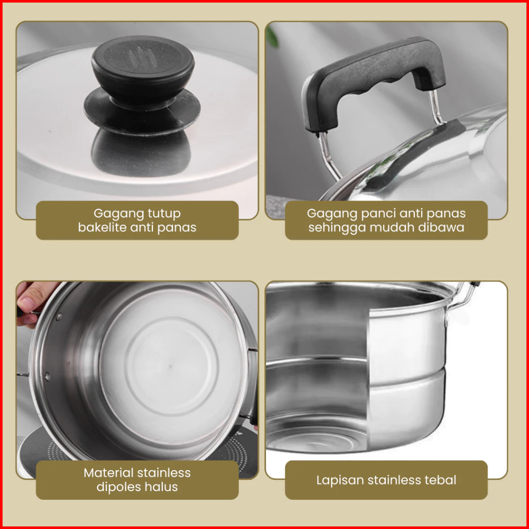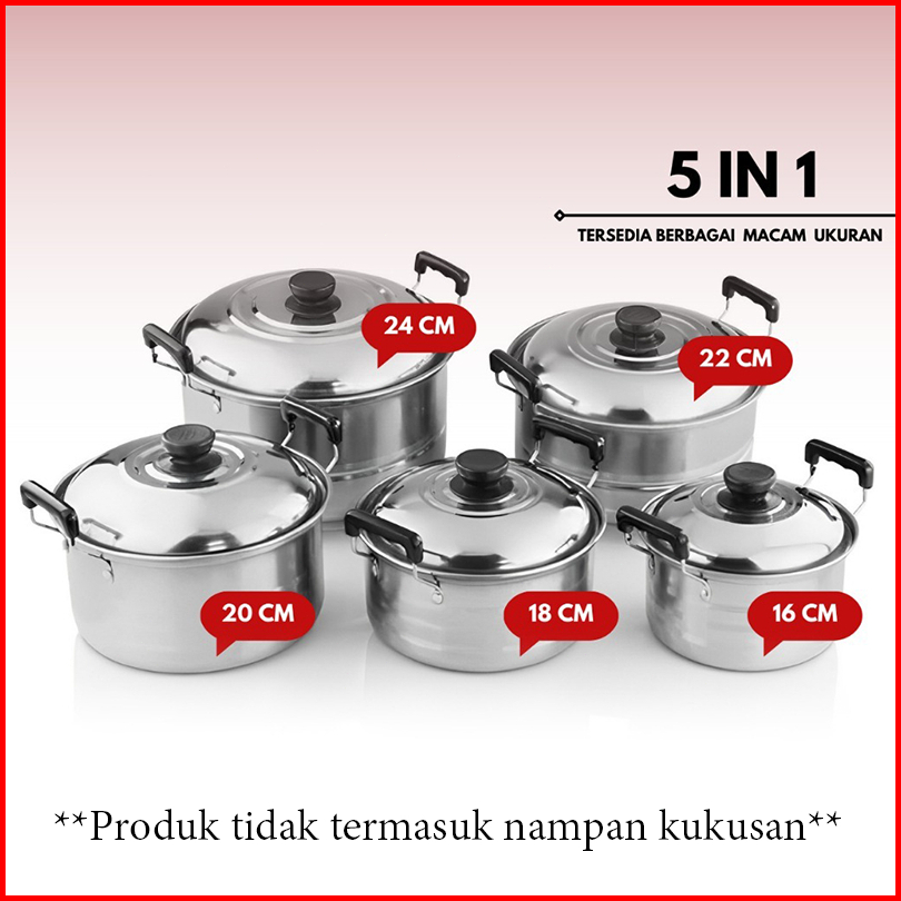 Stainless Panci Set 5 Susun Tutup Stenlis Panci Set 5 Susun Stainless Bahan Tebal Premium