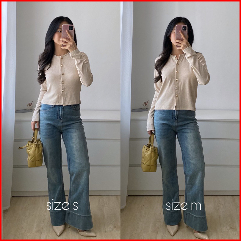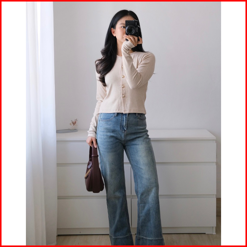 Leon Top Basic Korean Knit Top Atasan Rajut Wanita Baju Knit Lengan Panjang
