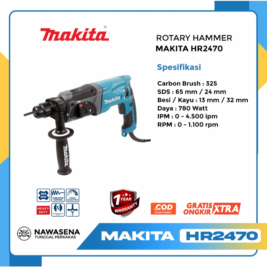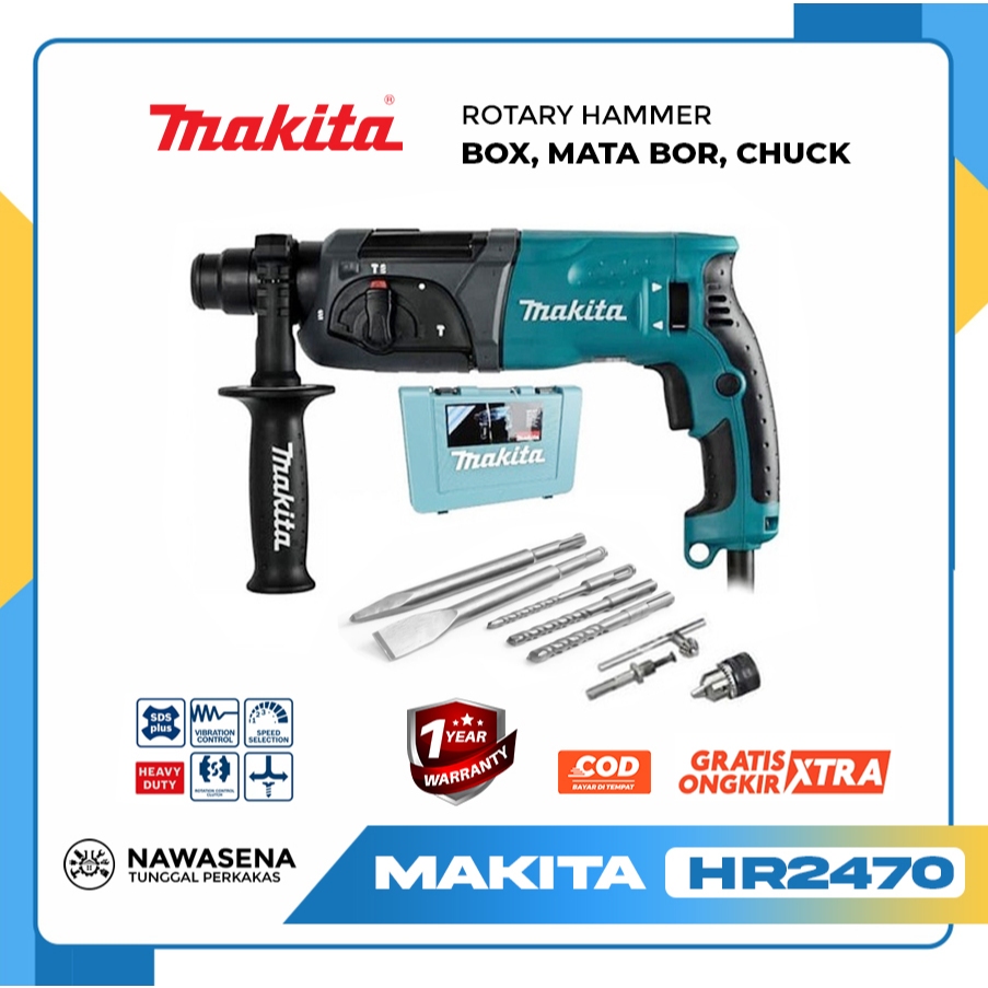 PROMO TERMURAH!!! Bor SDS Makita Rotary Hammer HR2470 + 5 Buah Mat Bor (Baru) TERBAIK