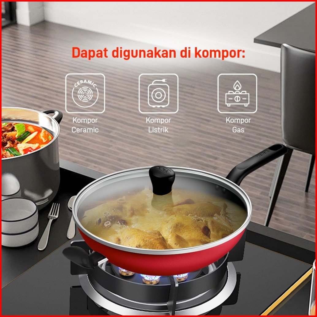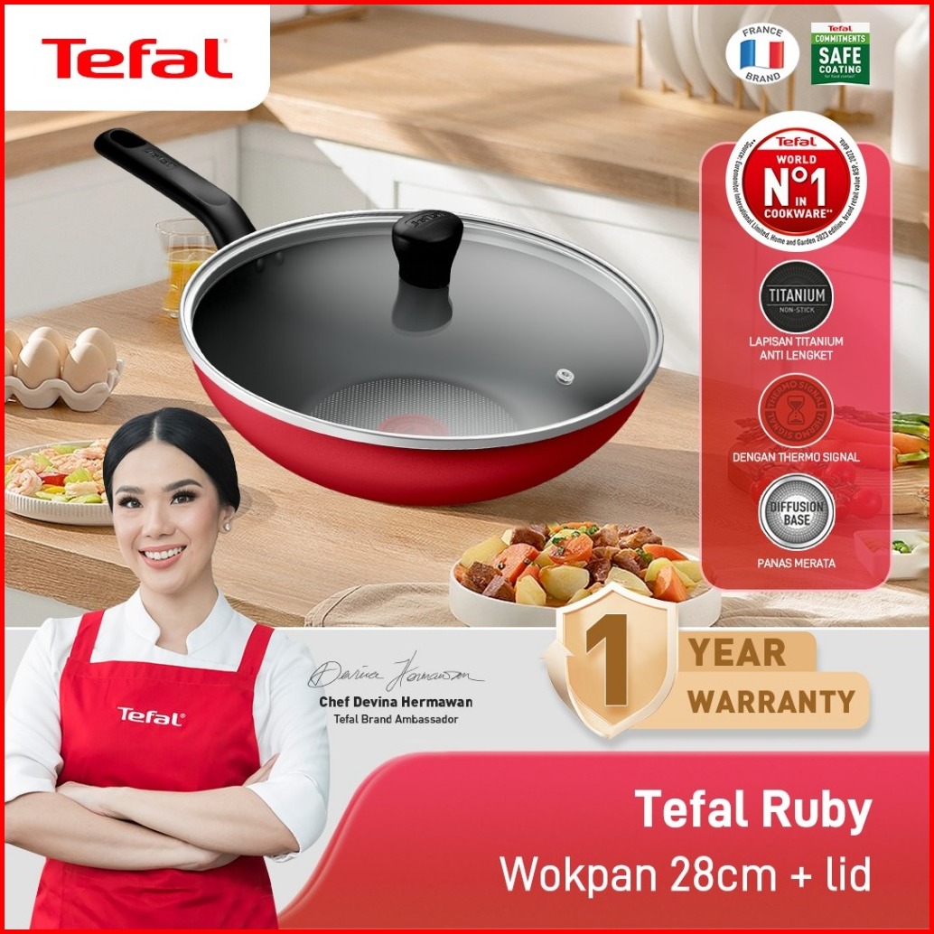 New Launch Tefal Ruby Frypan Series Anti Lengket 24 28 Cm Deep Frypan 24 28 Cm Wokpan Lid 28 Cm 32 Cm - Garansi 1 Tahun