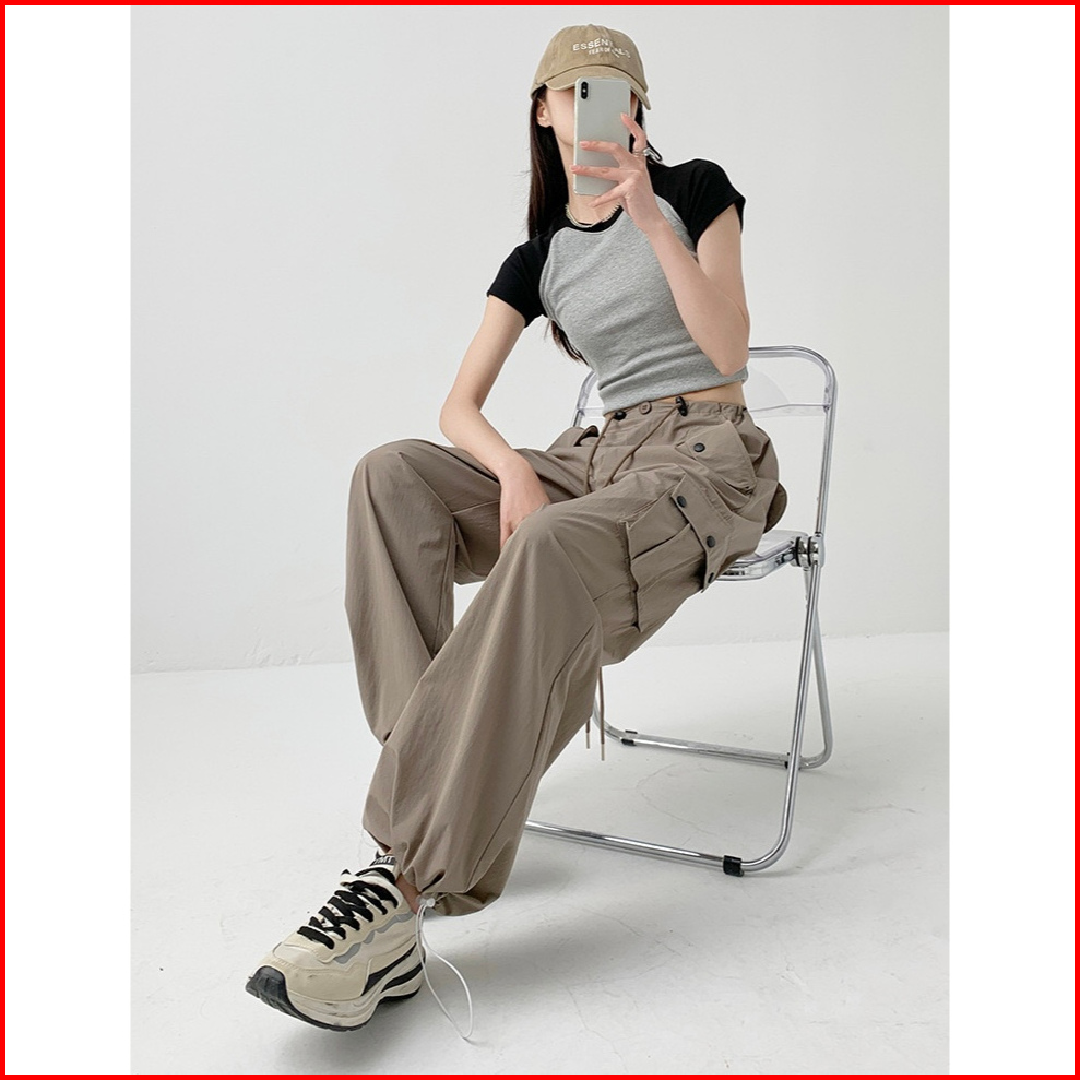 Friday Outfit Celana Panjang Parasut Wanita Gaya Korea Aurora Cargo