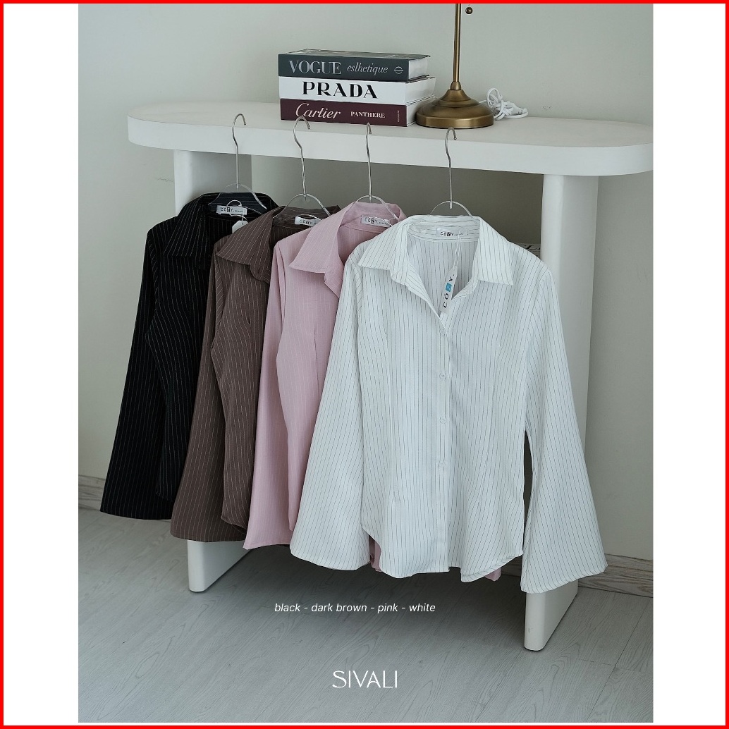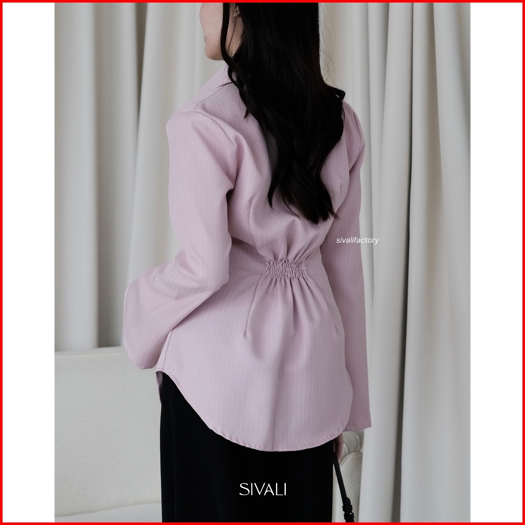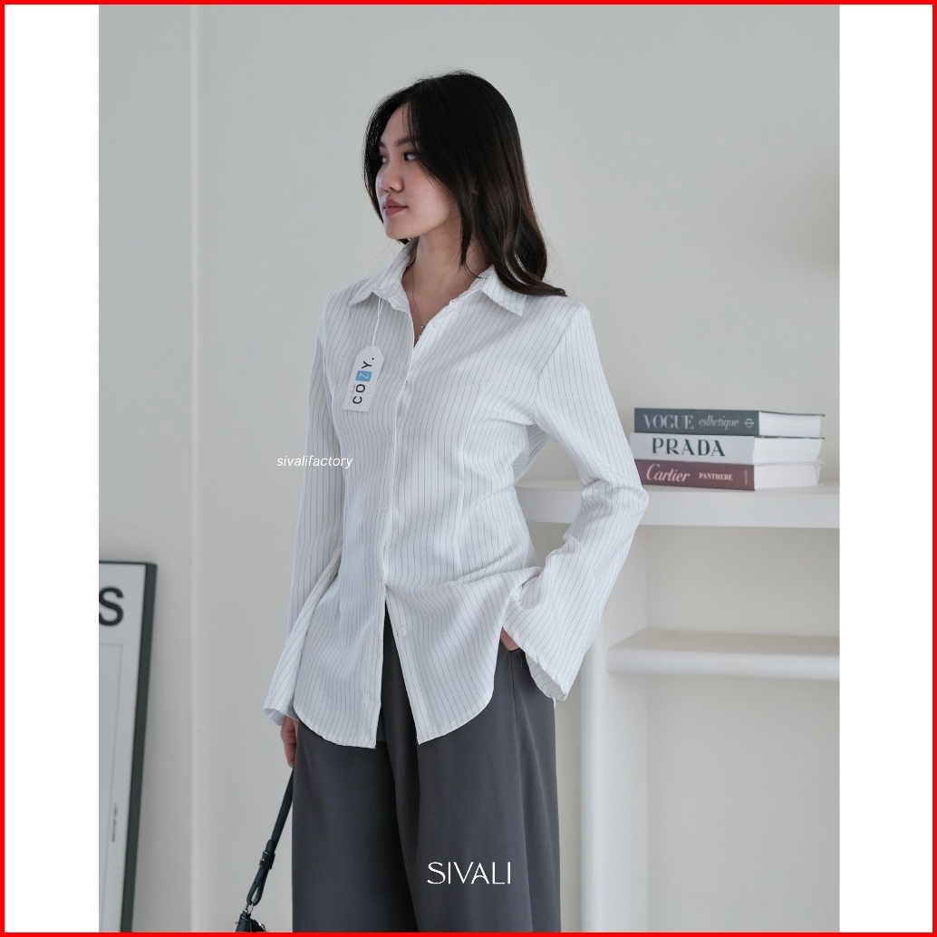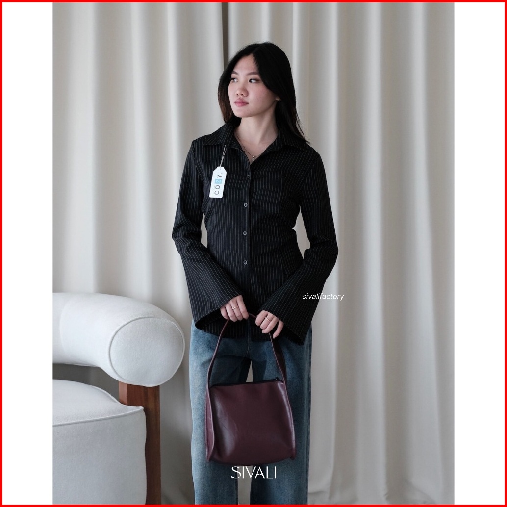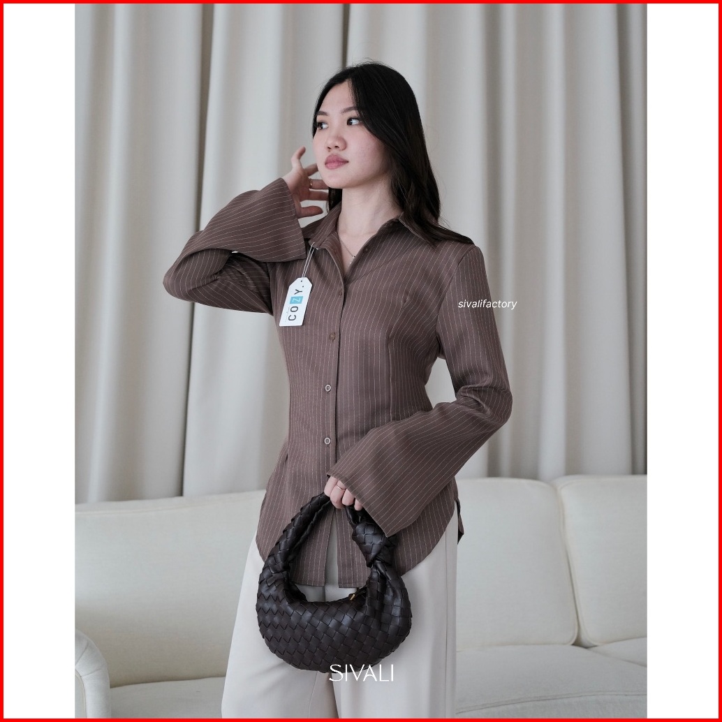 Sivali March Fitted Shirt - Kemeja Wanita Stripe Lengan Flare Panjang Casual Kerja - Atasan Wanita Semiwool