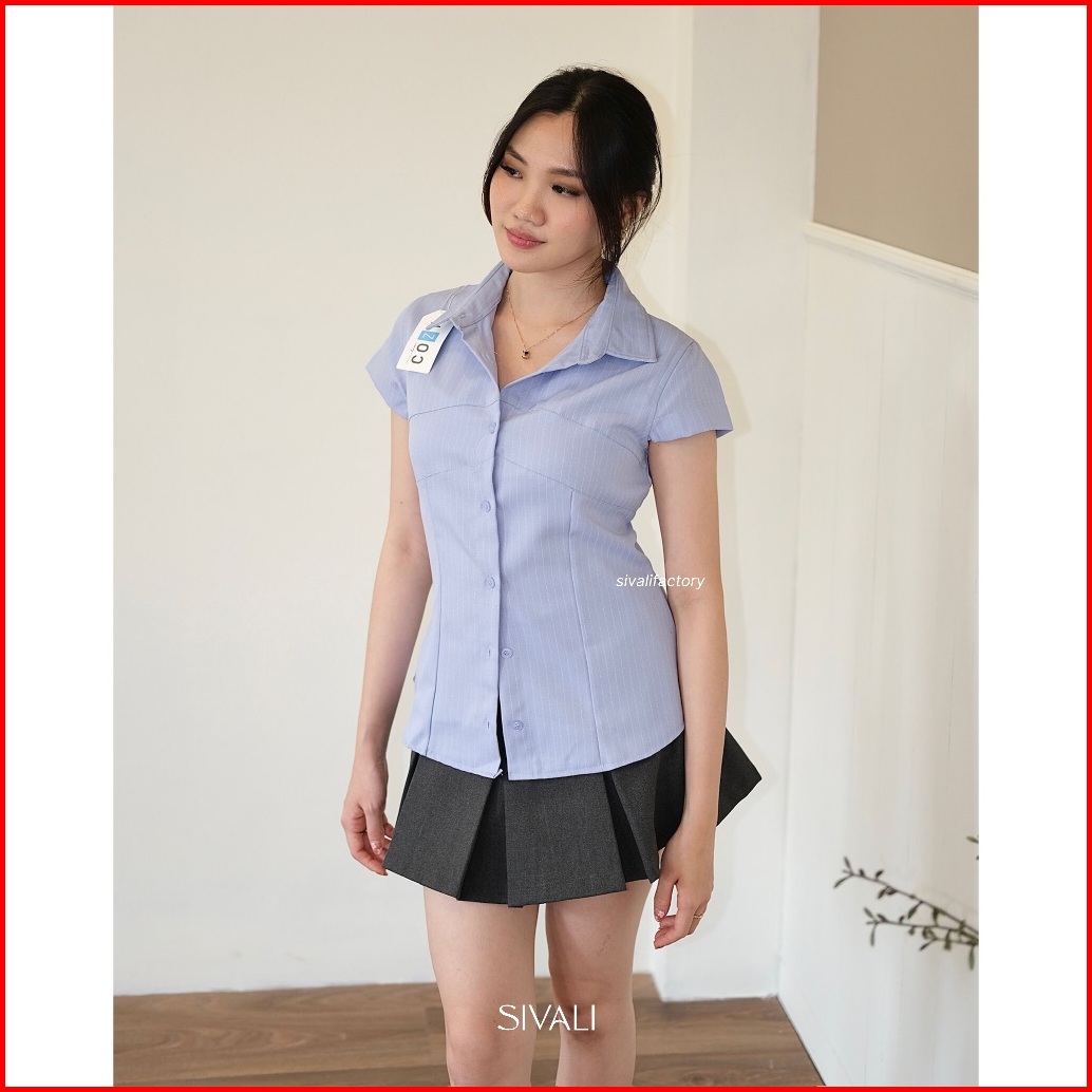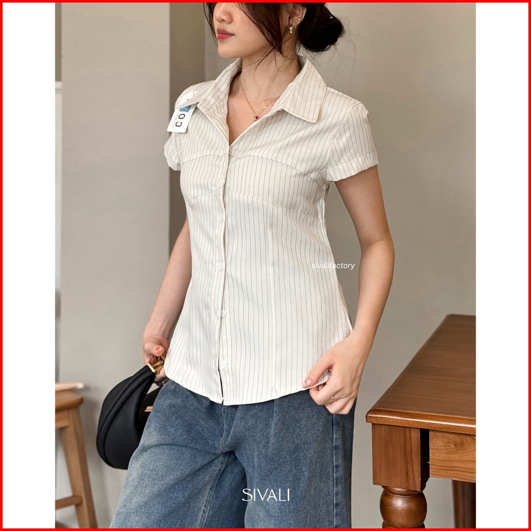 Sivali Millie Fitted Stripe Shirt - Kemeja Wanita Petite Shortsleeve Atasan Lengan Pendek Slim Effect