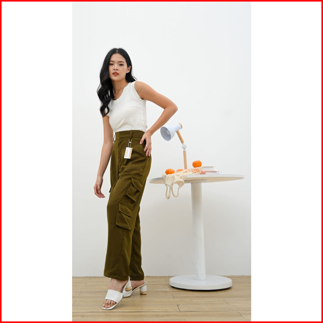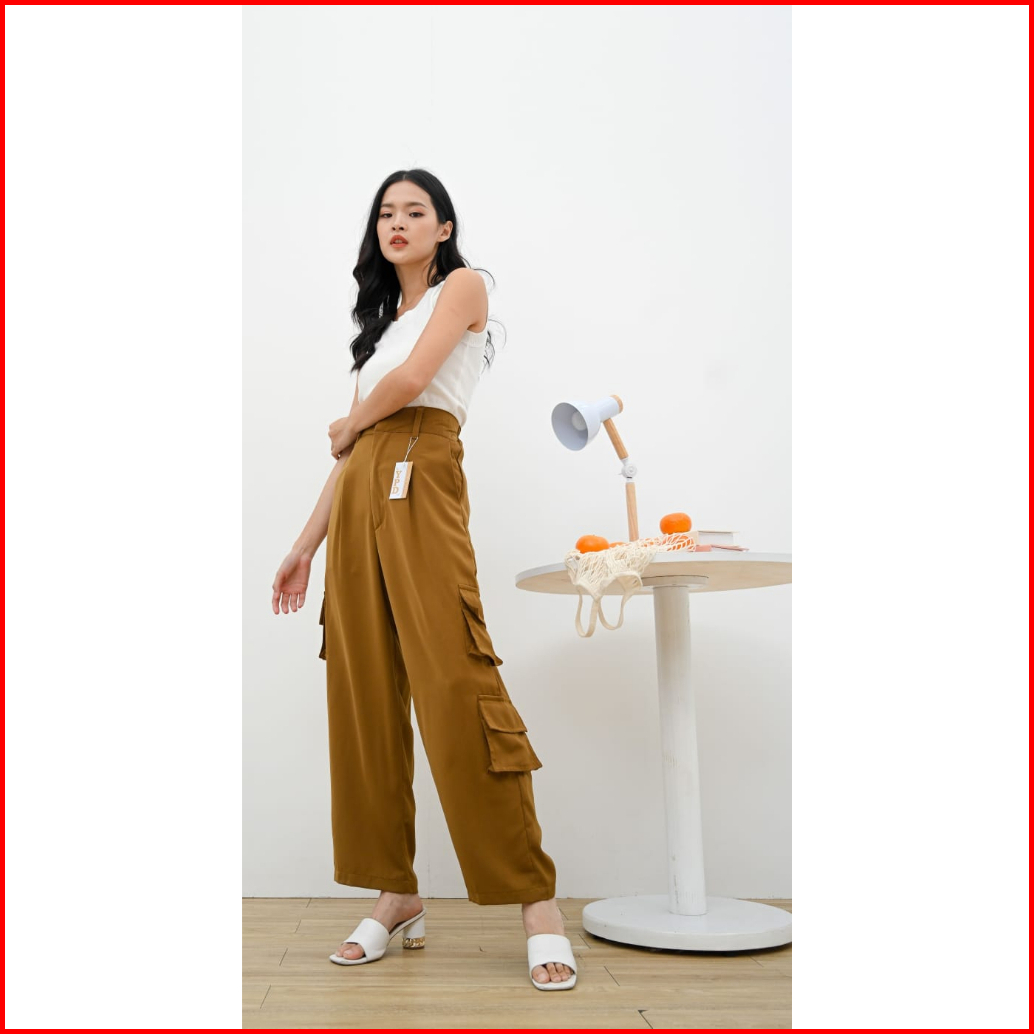 Cargo Pants - Highwaist Loose Cargo - Celana Kargo Wanita Polyester Ypd.id