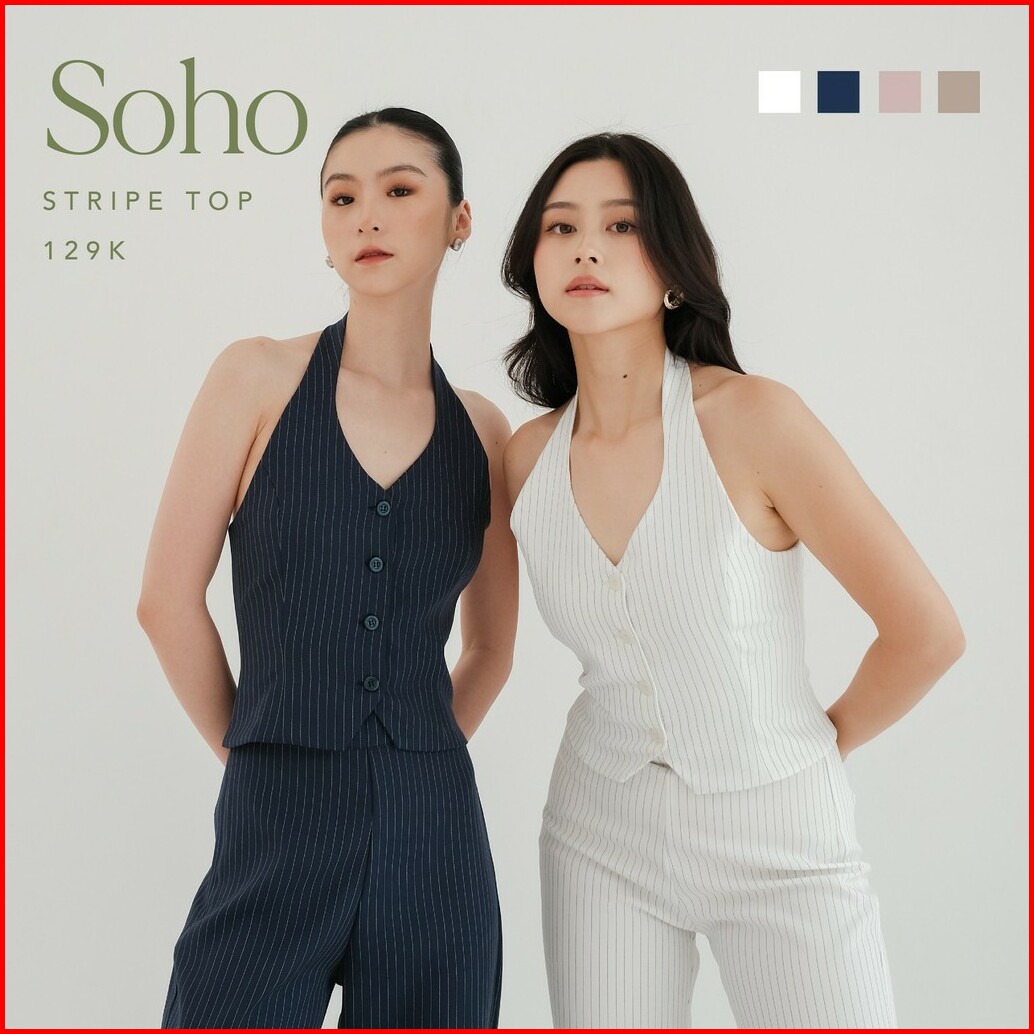 Soho Stripe Halter -- Ocha Wear Halter Neck Pattern Classic Elegant Top Trendy Stylish Elegant