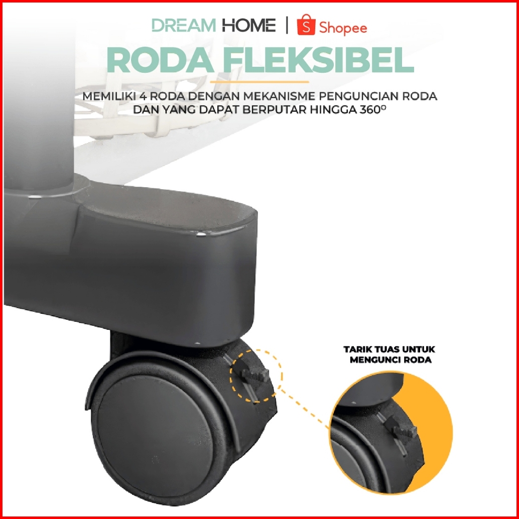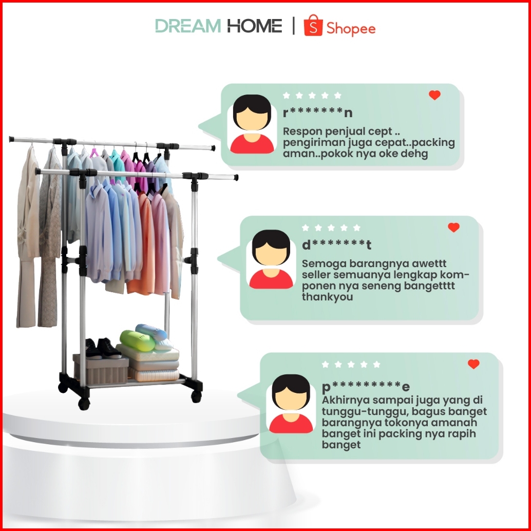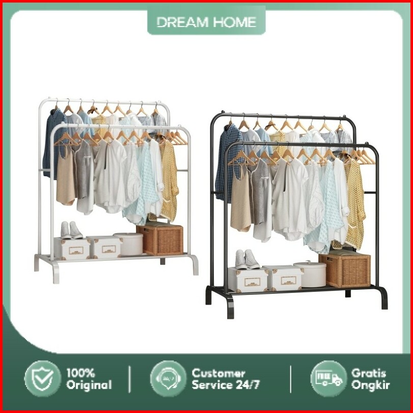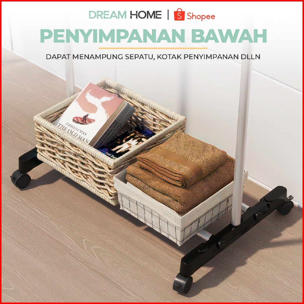 Dreamhome Stand Hanger Gantungan Baju Rak Gawang Jemuran Gantungan Double Roda 4