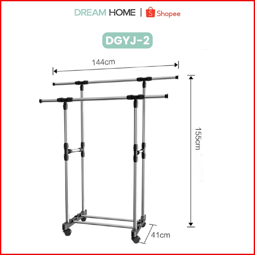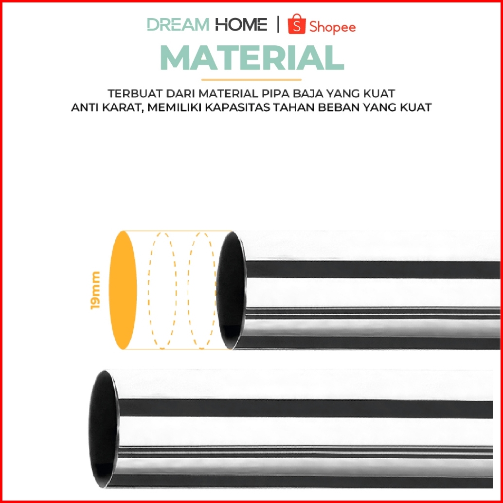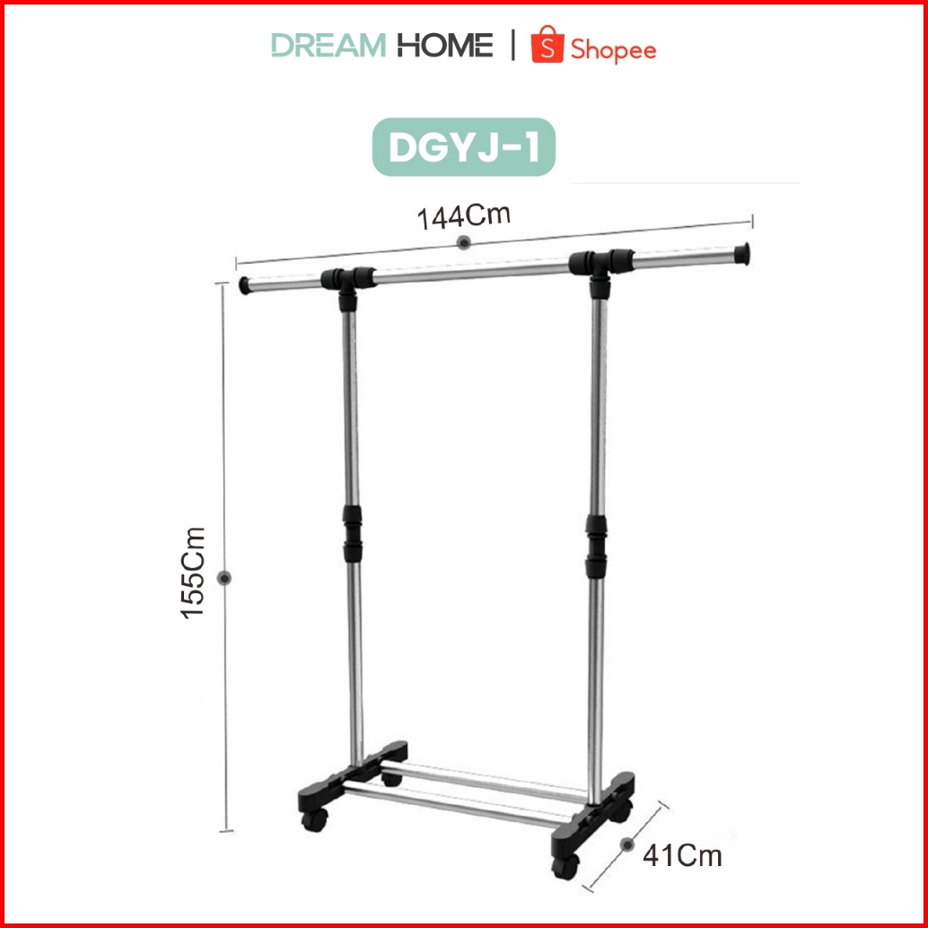 Dreamhome Stand Hanger Gantungan Baju Rak Gawang Jemuran Gantungan Double Roda 4