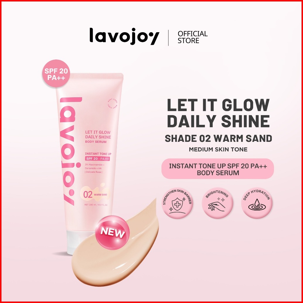 New Launch Shade 02 Lavojoy Let It Glow Daily Shine Body Serum Tone Up Shade 02 Warm Sand With Spf 20 Medium Skin Tone B