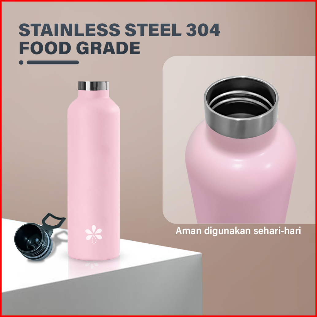 Tumbler Stainless 1000ml Tahan Panas Dingin 24 Jam Botol Minum Aesthetic Anti Bocor Termos Sedotan Pink