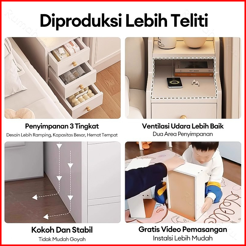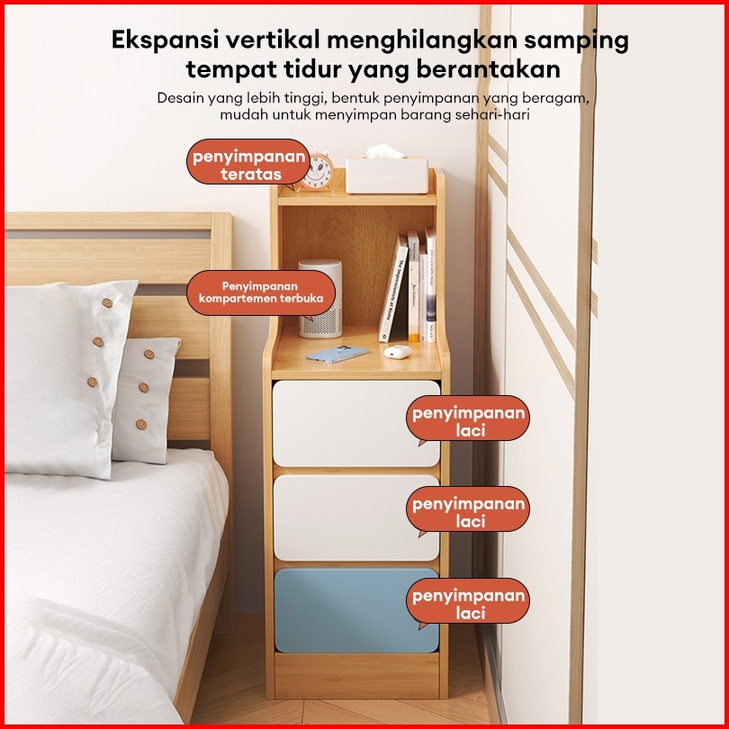 Meja Nakas Bedside Table Meja Kamar Tidur Lemari Laci Serbaguna Meja Nakas Kayu Nakas Minimalis 87cm