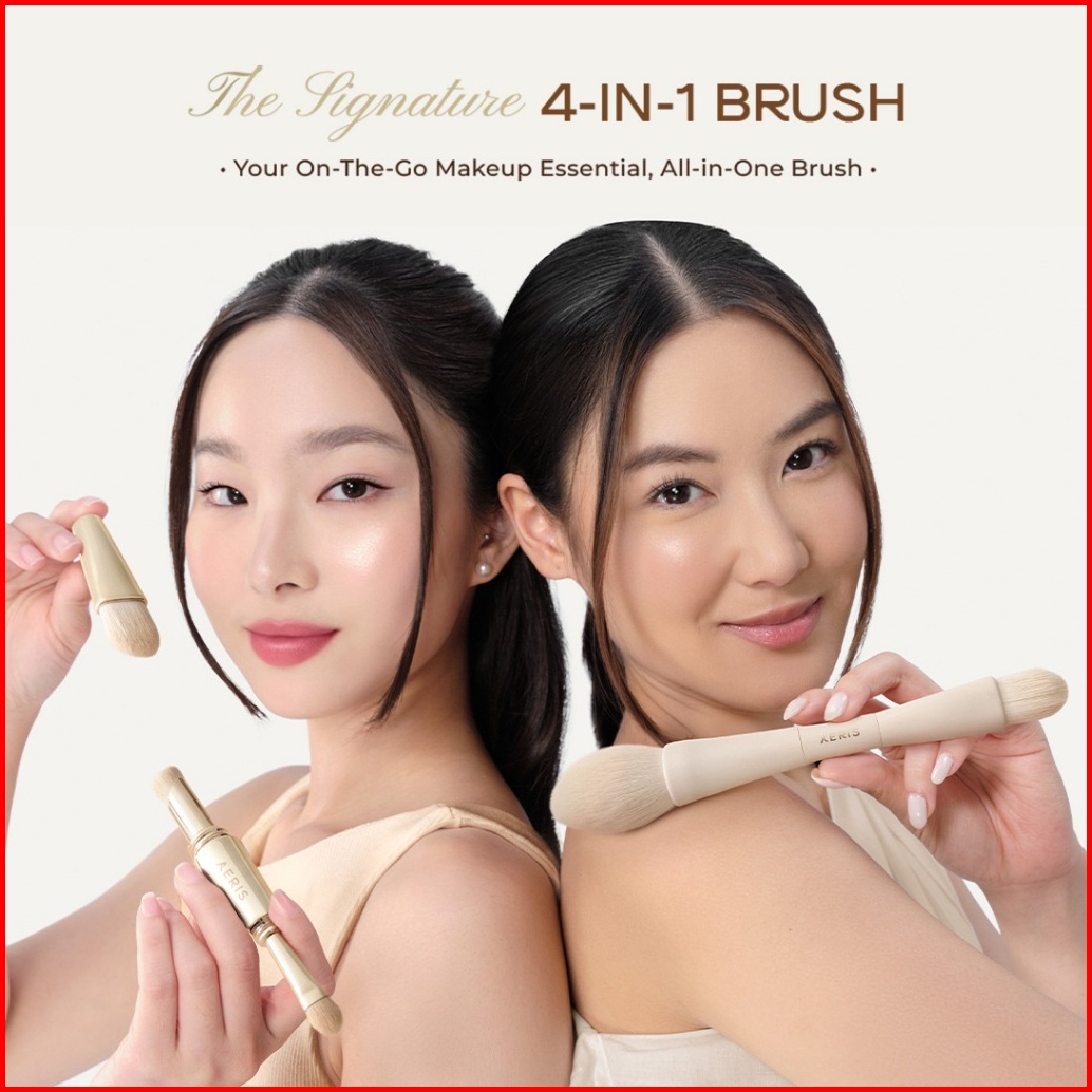Aeris Beaut The Signature 4-in-1 Brush Alat Make Up Kuas Rias Lembut Premium Multifungsi 4in1 Travel Portable Untuk Beda