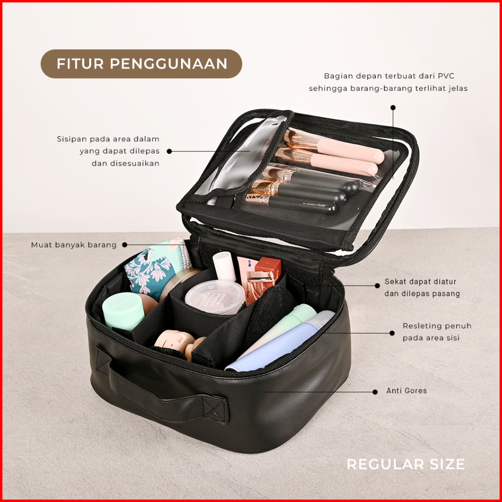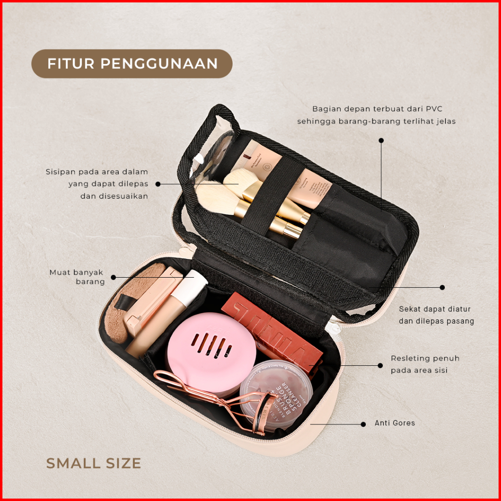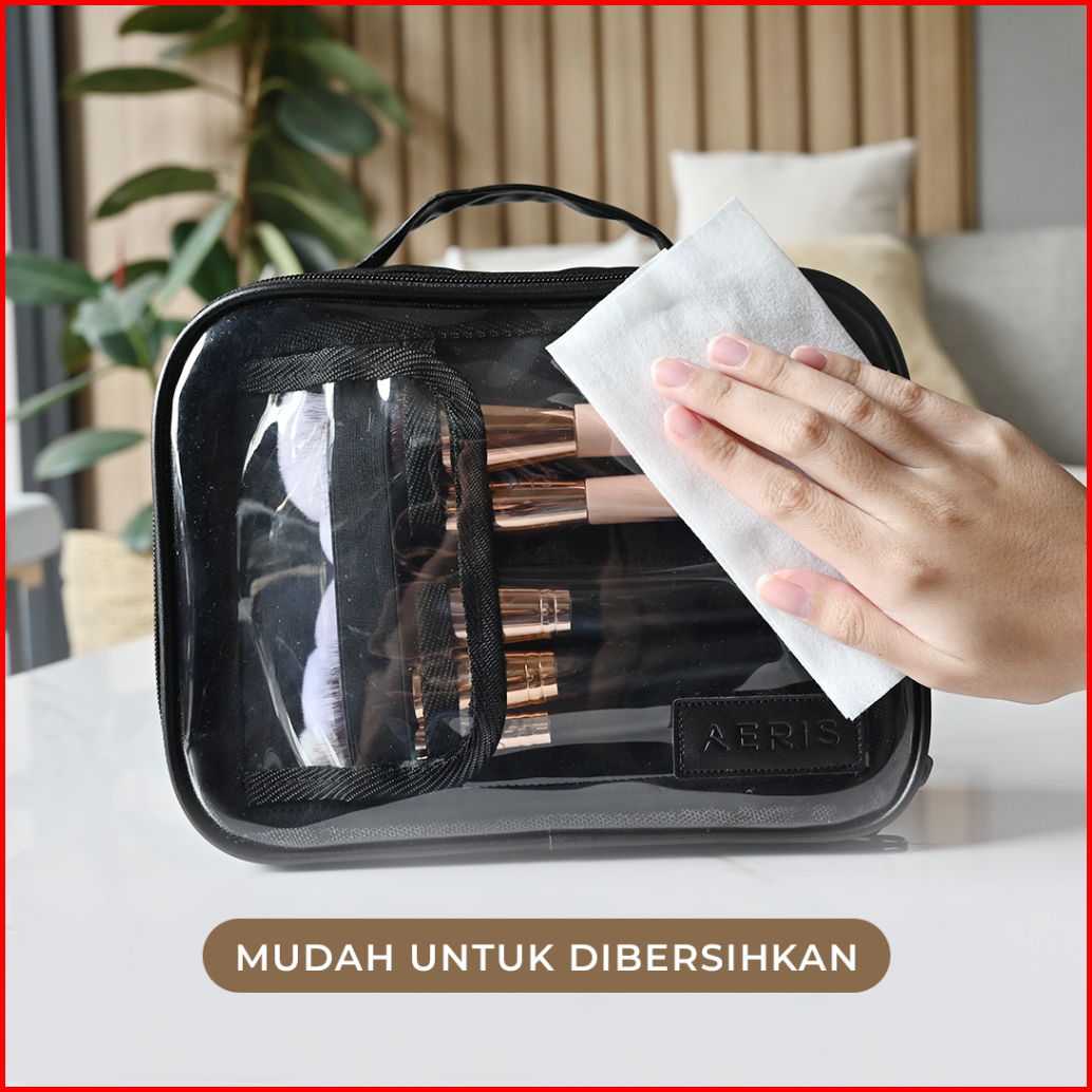 Aeris Beaut Clear Smart Travel Pouch Tas Penyimpanan Brush Make Up Skincare Besar Multifungsi Dengan Kaca Tahan Air Untu