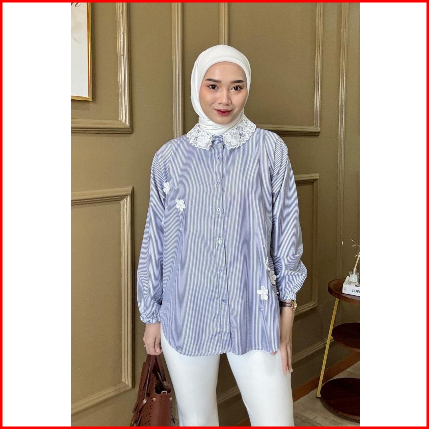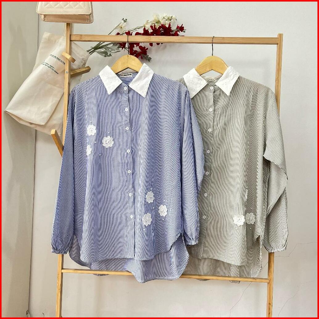 Felixa Shirt Atasan Wanita Kekinian Kemeja Salur Bahan Cotton