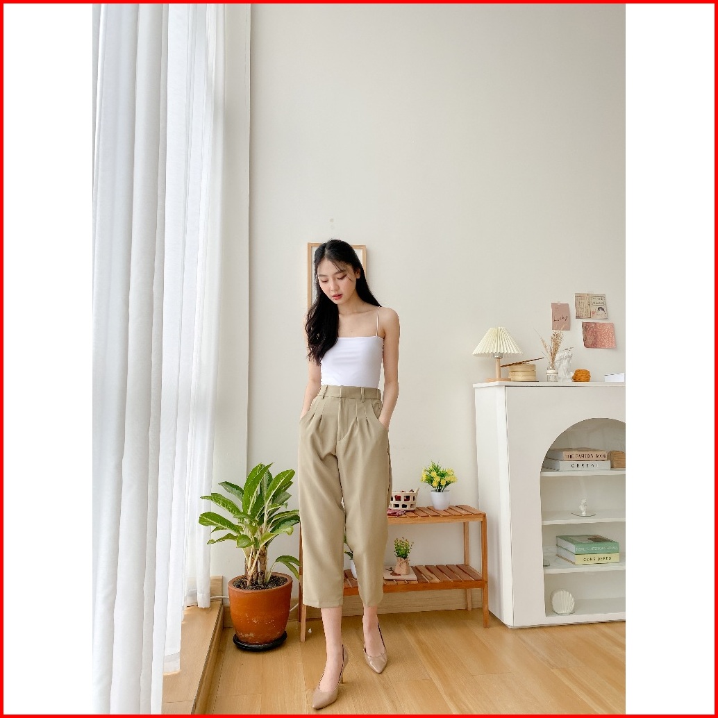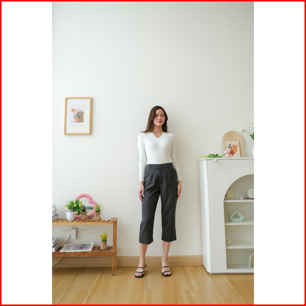 Kaorithelabel Hyosi High Waist Pants Celana Basic Wanita Korea - Highwaist Pants - Celana Kantor Casual - Petite Friendl