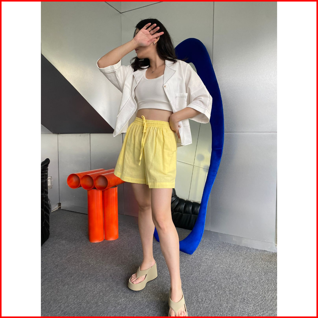 Peach Poppy Nycta Pants Linen Premium - Celana Ginna - Celana Pendek Linen Wanita Shorts Casual