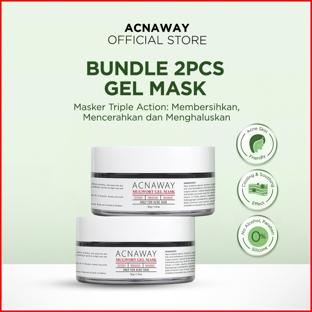 Acnaway Bundle 2 Pcs Mugwort Gel Mask Masker Wajah Soothing Untuk Kulit Sensitif Acne Prone With Peptides Bakuchiol Mugw